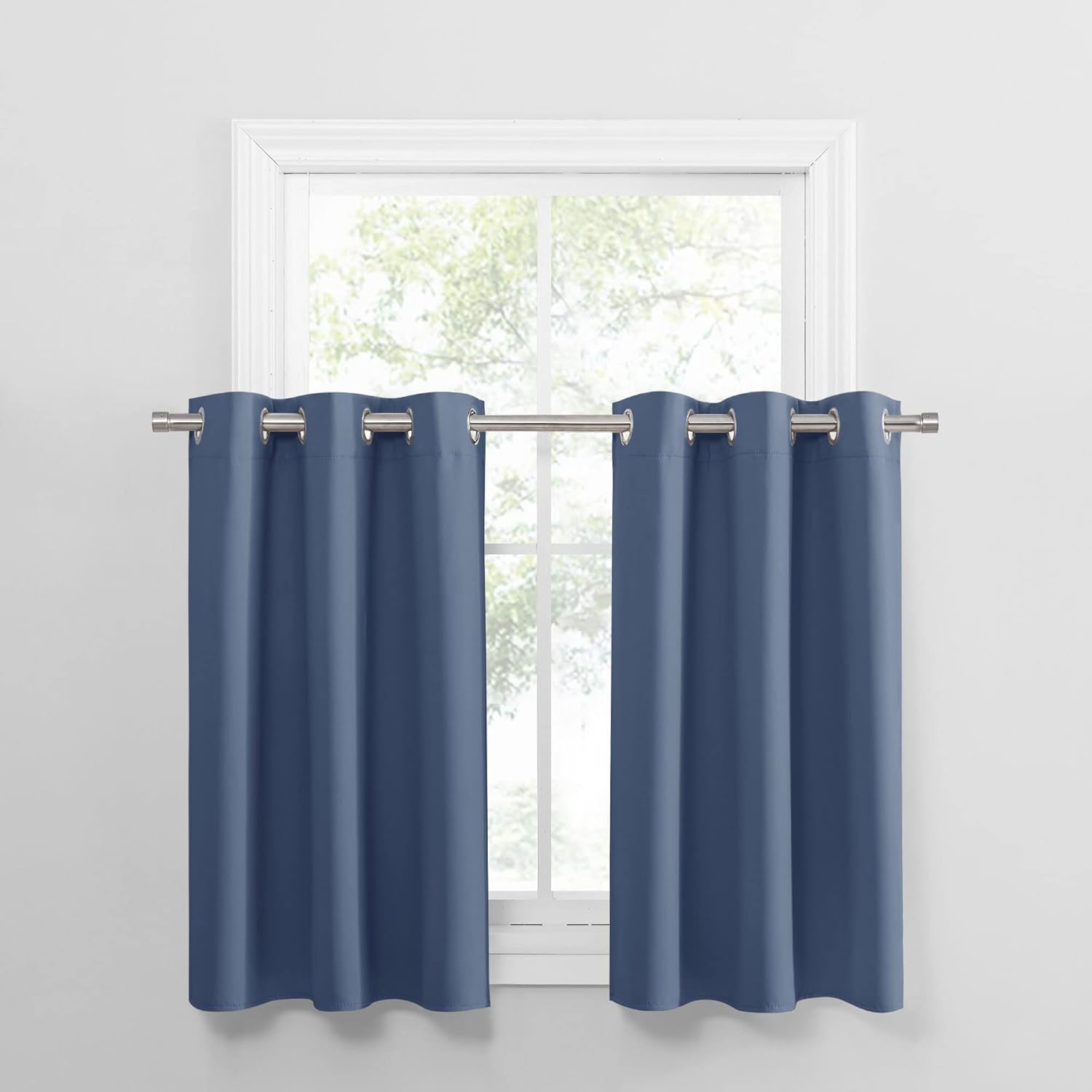 PONY DANCE Stone Blue Kitchen Curtains 36 inch Long for Small Window Curtains Short Drapes for Bedroom, Half Window Tiers for Boys Room Bathroom Nursery(2 Panels, W 42 x L 36 inches, Blue Haze)