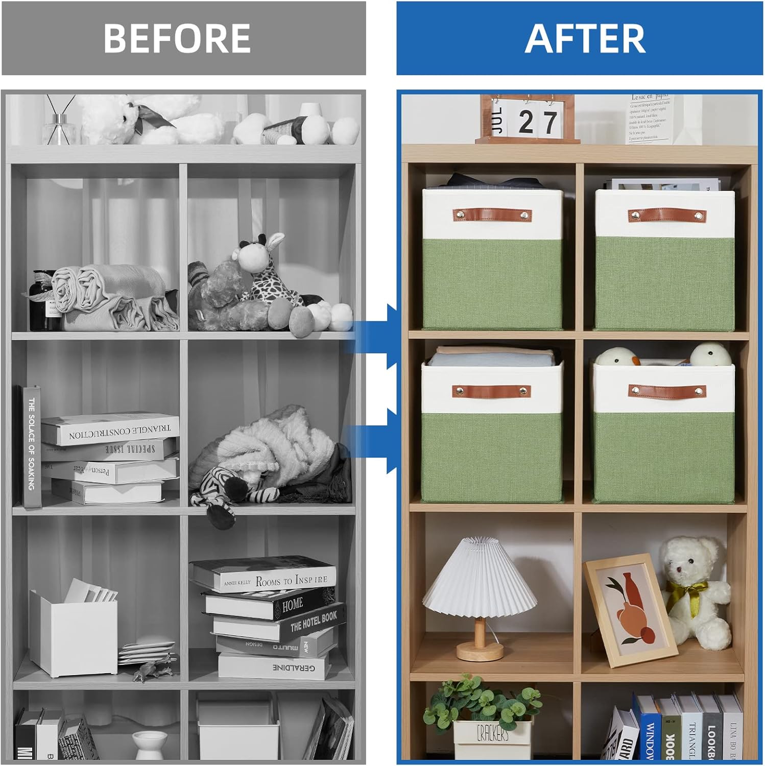 - MULTI-PURPOSE STORAGE CUBES: Ideal for a variety of basic household storage needs, helping to keep your living spaces neat. The organizer baskets for shelves can be used as 11 storage cube bins for cube storage, and many other uses. Due to the light when shooting difference and other natural reasons and display resolution is different, there is a little color difference is normal, You can rest assured that our product is premium quality.