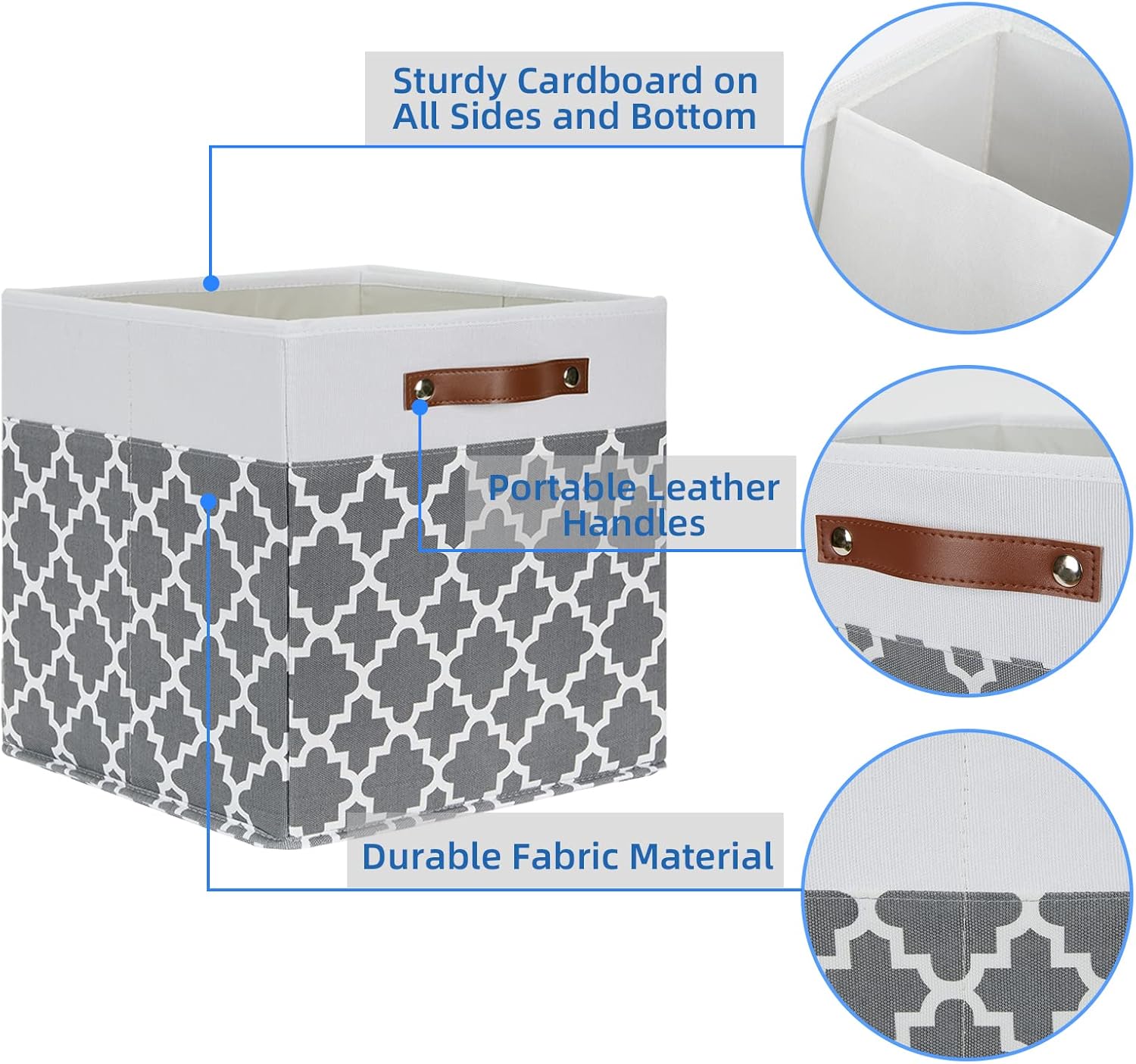 Temary Cube Storage Bins 13x13 Cubes Storage Bins for Shelf, 4 Pack Cube Storage Bins for Organizing Storage Basket with Handles(Grey Lattice)