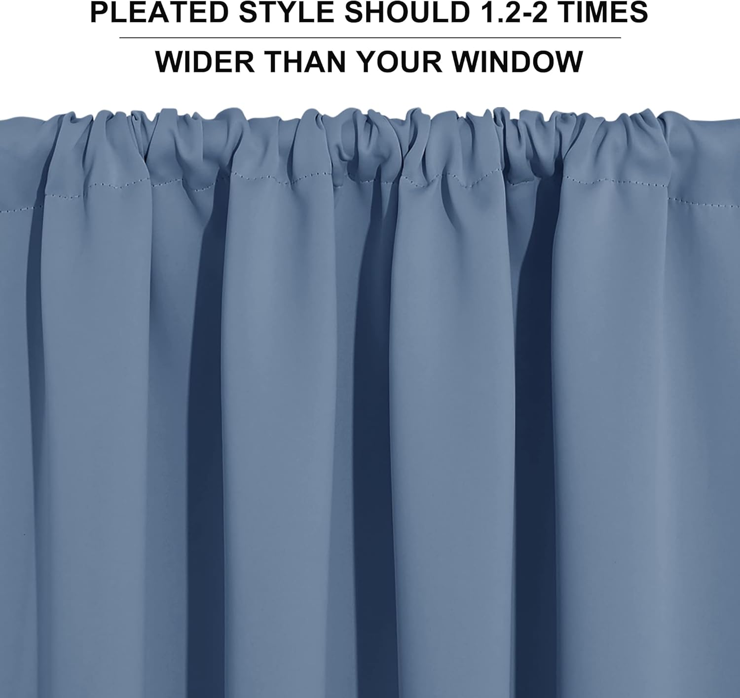 RYB HOME Small Curtains for Bathroom Windows, Blackout Blinds Shades for Bedroom Dorm Storage Cabinet Door Basement Farmhouse Decor, W 34 x L 36 inches, Stone Blue, 2 Panels