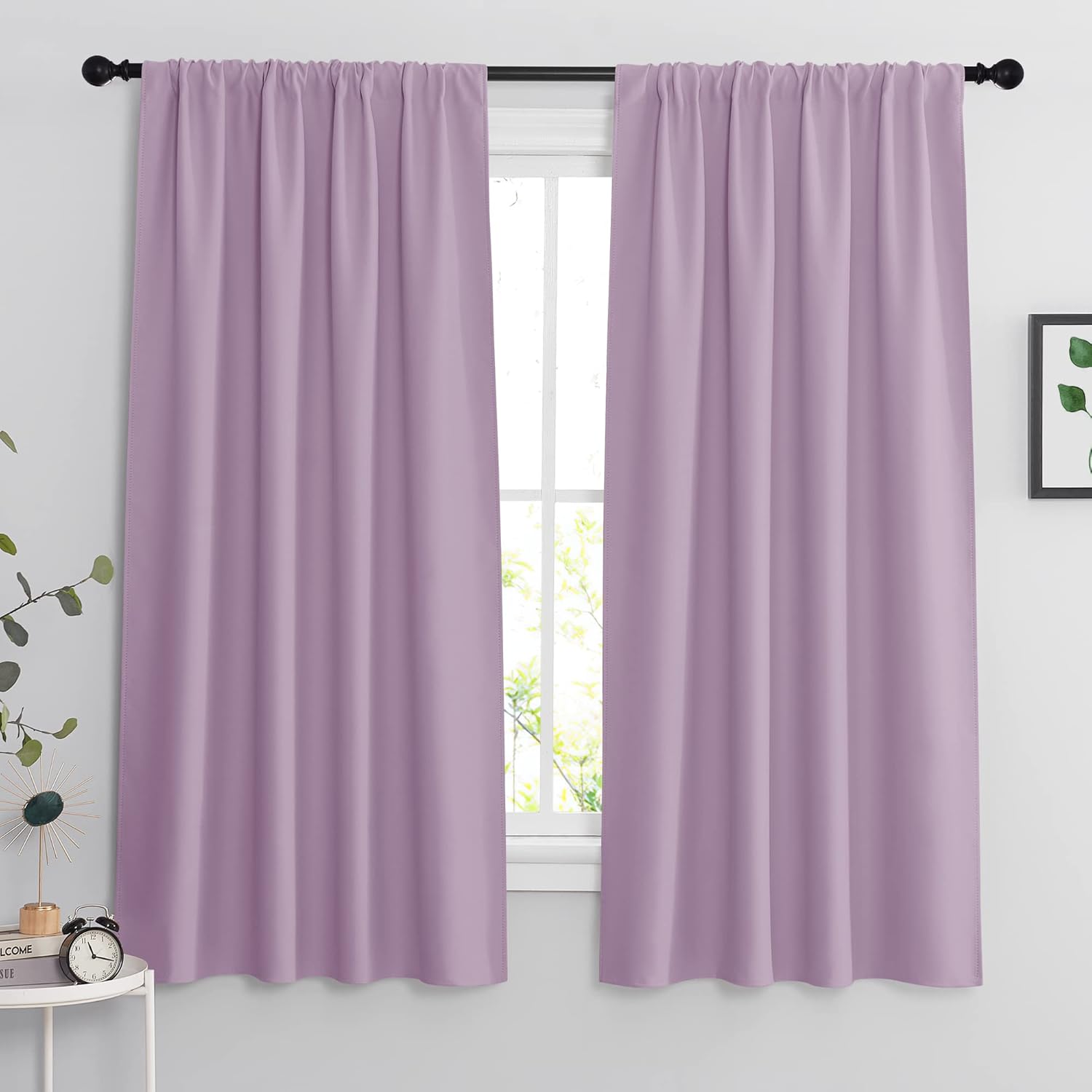 RYB HOME Bedroom Curtains Solid Blackout Panels Rod Pocket Thermal Insulated Window Drapes for Living Room, 42 Width x 63 inch Length 2 Panels Set, Lilac