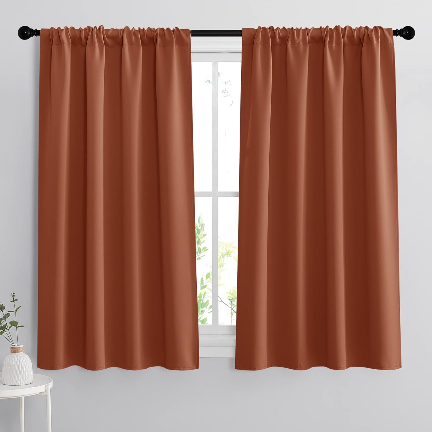 RYB HOME Small Window Curtains for Kitchen, Thermal Insulated Privacy Shades Chic Home Decoration for Basement Bathroom Door Window, Width 42 x Length 45 inch, 2 Panels, Burnt Orange