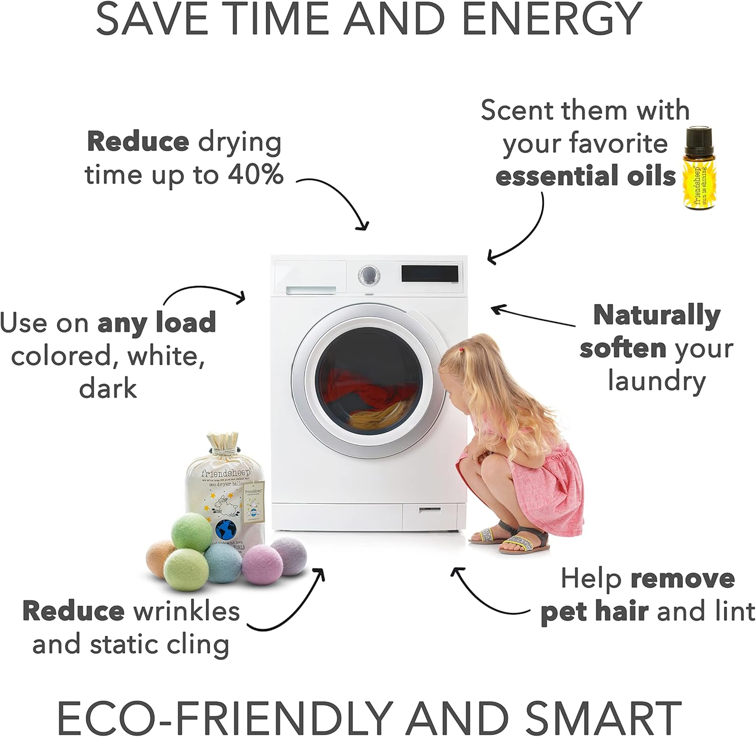 - ECO-FRIENDLY AND REUSABLE FOR 1000+ LOADS, replaces dryer sheets & liquid fabric softeners. Makes your laundry soft and fluffy, reduces wrinkles and static cling, and shortens drying time by up to 40% depending on load size. Your sheets and towels are fluffier, less balling and twisting. Makes you SAVE TIME, ENERGY, AND MONEY! All by keeping safe and healthy you, your family and the environment.