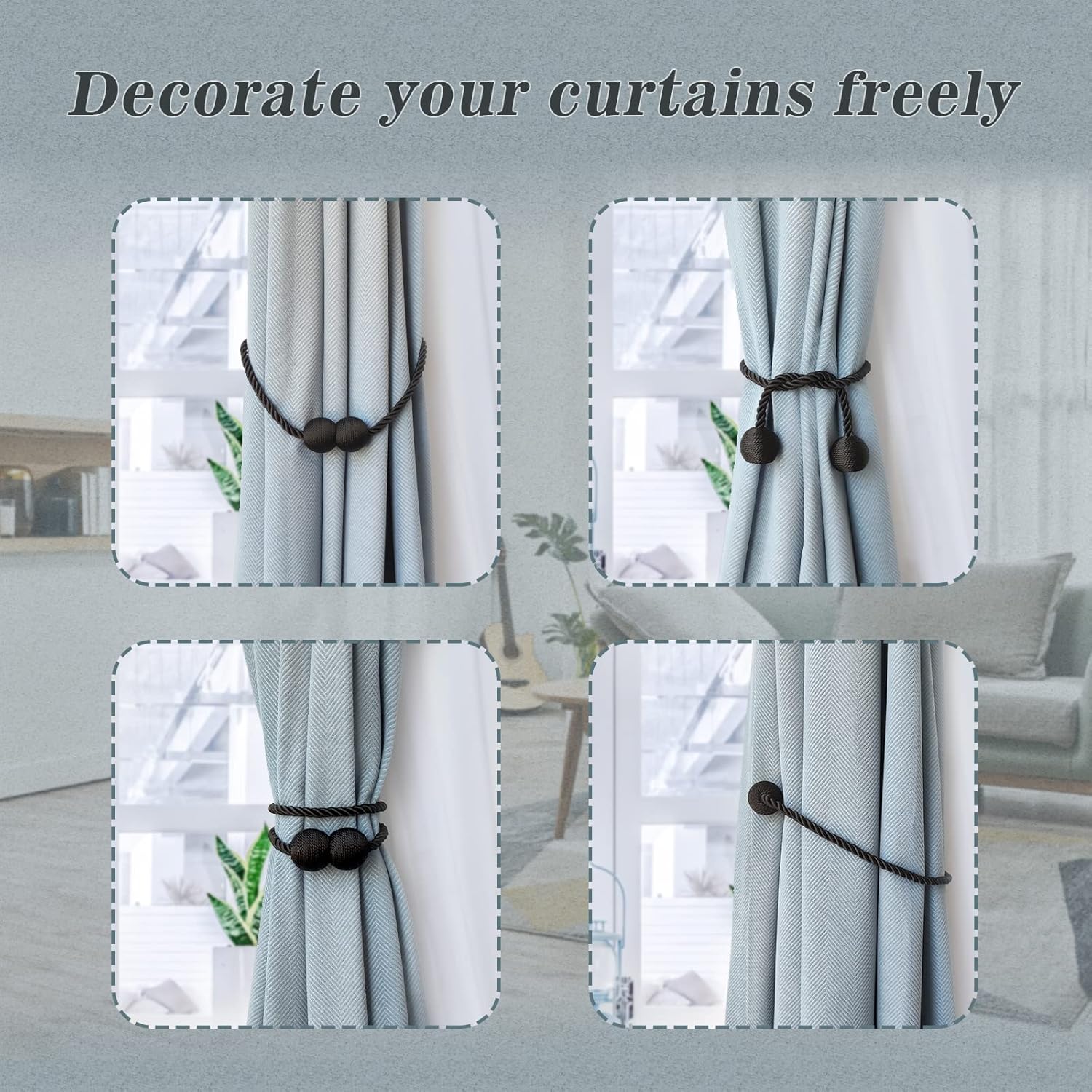 - š[Upgrade Powerful Magnetic] Our magnetic curtain tiebacks magnets use high-end new imported nickel-plated magnets, more magnetic than ordinary magnetic, the upgraded magnets are also less prone to rusting, with strong corrosion resistance and durability. The rope of curtain tie adopts thickened solid polyester yarn, which is not only durable, but also not easy to wear or pilling.