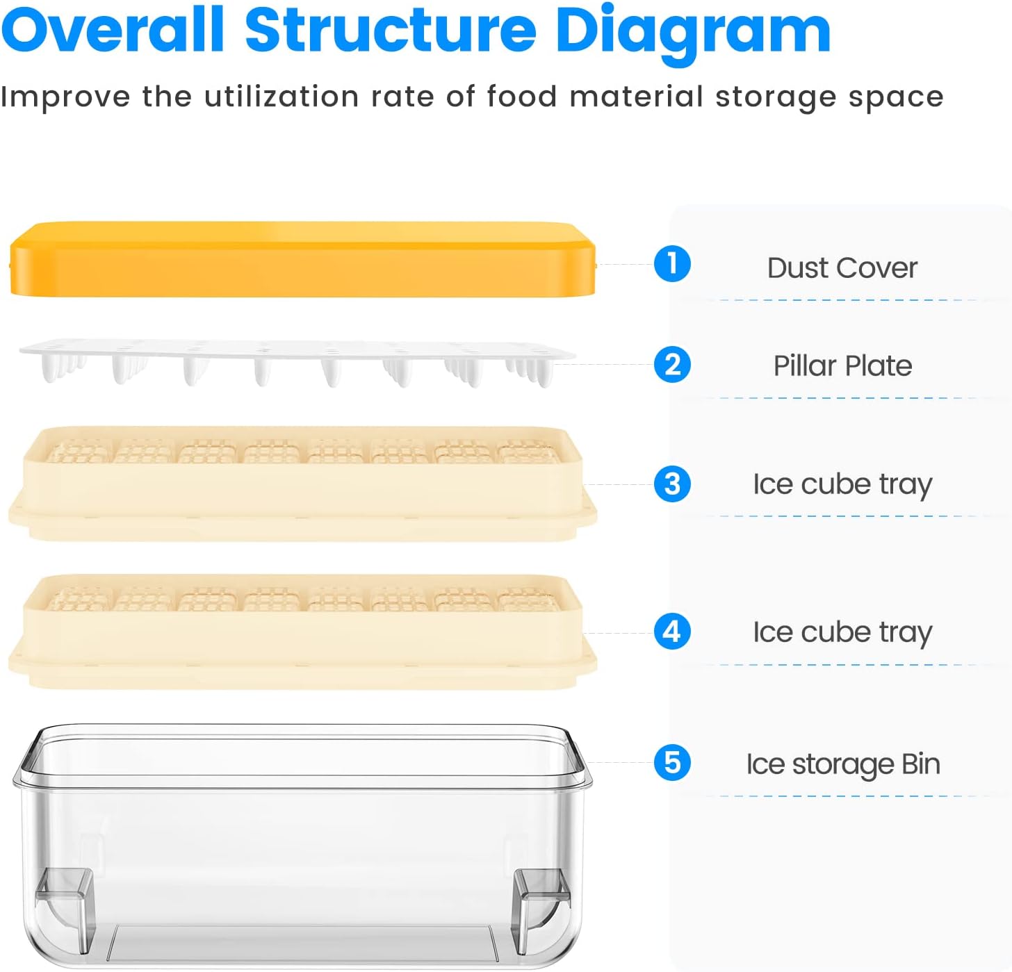 - Food Grade Material & BPA Free:This ice trays for freezer with lid and bin are made of food grade PP material, which is safe and can be frozen and used repeatedly for a long time.The ice cube tray is NOT DISHWASHER SAFE