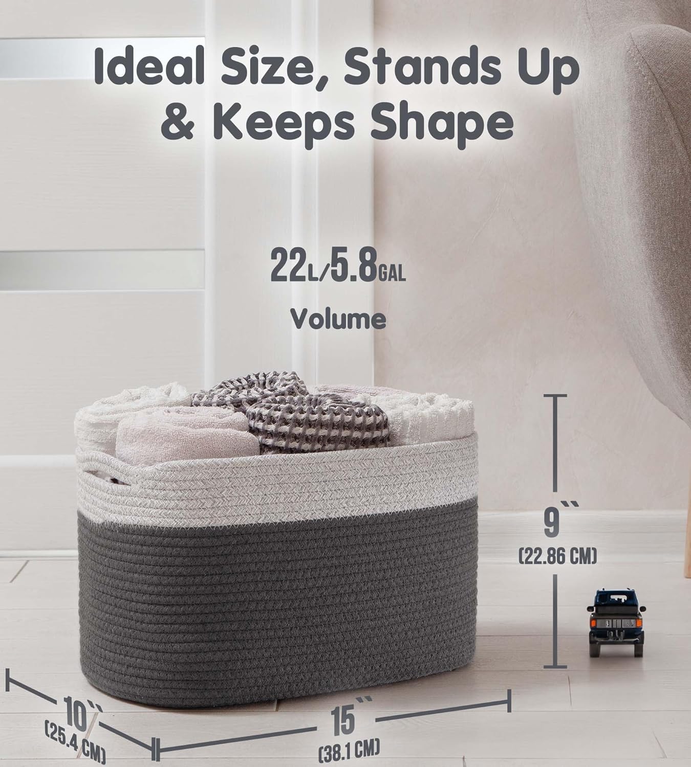 CHAT BLANC Cotton Rope Baskets for Organizing I Storage Baskets for Shelves | Rope Basket for Storage, Small Laundry Baskets, Woven Baskets for Storage, Dog Toy Bin, Baby Basket, Gray & Graphite 3Pack