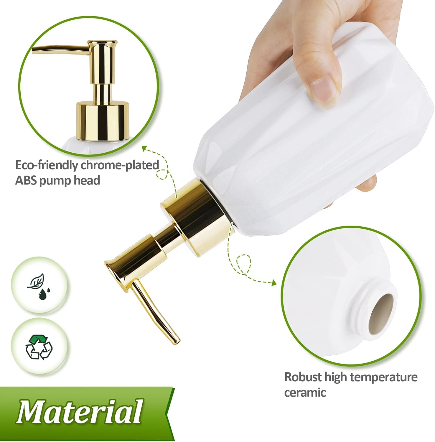 Natheeph Dish Soap Dispenser, Hand Soap Dispenser Ceramic Bottle, Refillable Liquid Great for Kitchen Dish Soap, Hand Soap, Essential Oil & Lotion (New White)