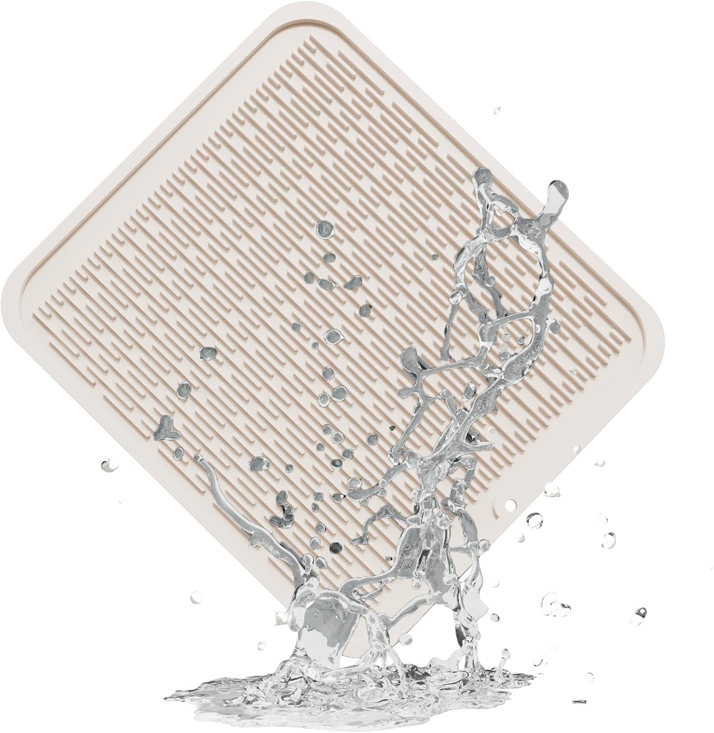 ZLR Silicone Dish Drying Mat for Kitchen Counter, Eco-Friendly Fast Dry Dish Mat, Easy Clean Multi Usage Drying Matt, Heat Resistant Trivet, 16" x 18" XL, Cassava White