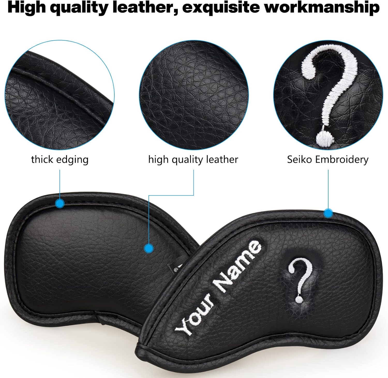 CRAFTSMAN GOLF 12pcs or 1pc Thick Synthetic Leather Golf Iron Head Covers Set Headcover Fit All Brands Callaway Ping Taylormade Cobra Etc. Also Custom Name