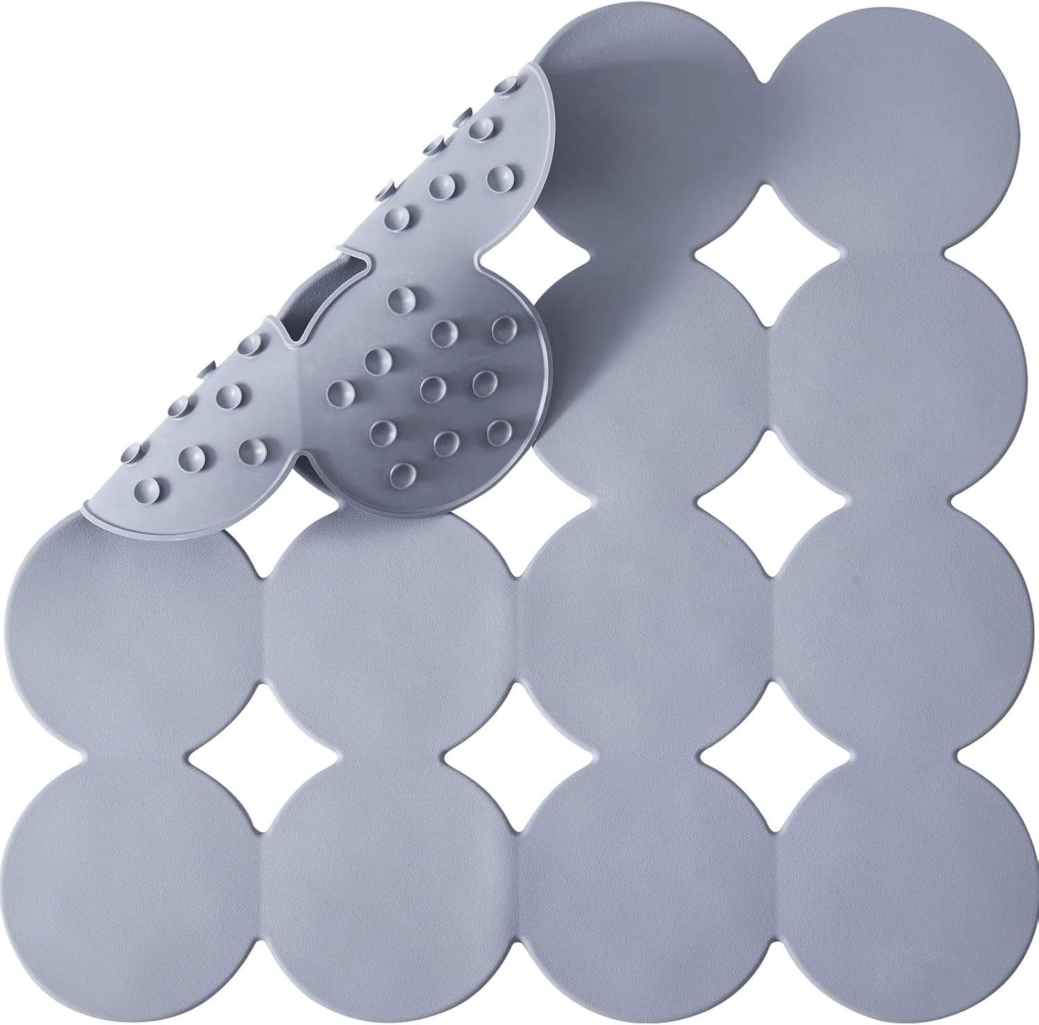 Square Shower Mat Nonslip - Rubber Bathtub Mat with Suction Cups for Inside Shower Bathroom Floor (Grey, 21X21”)