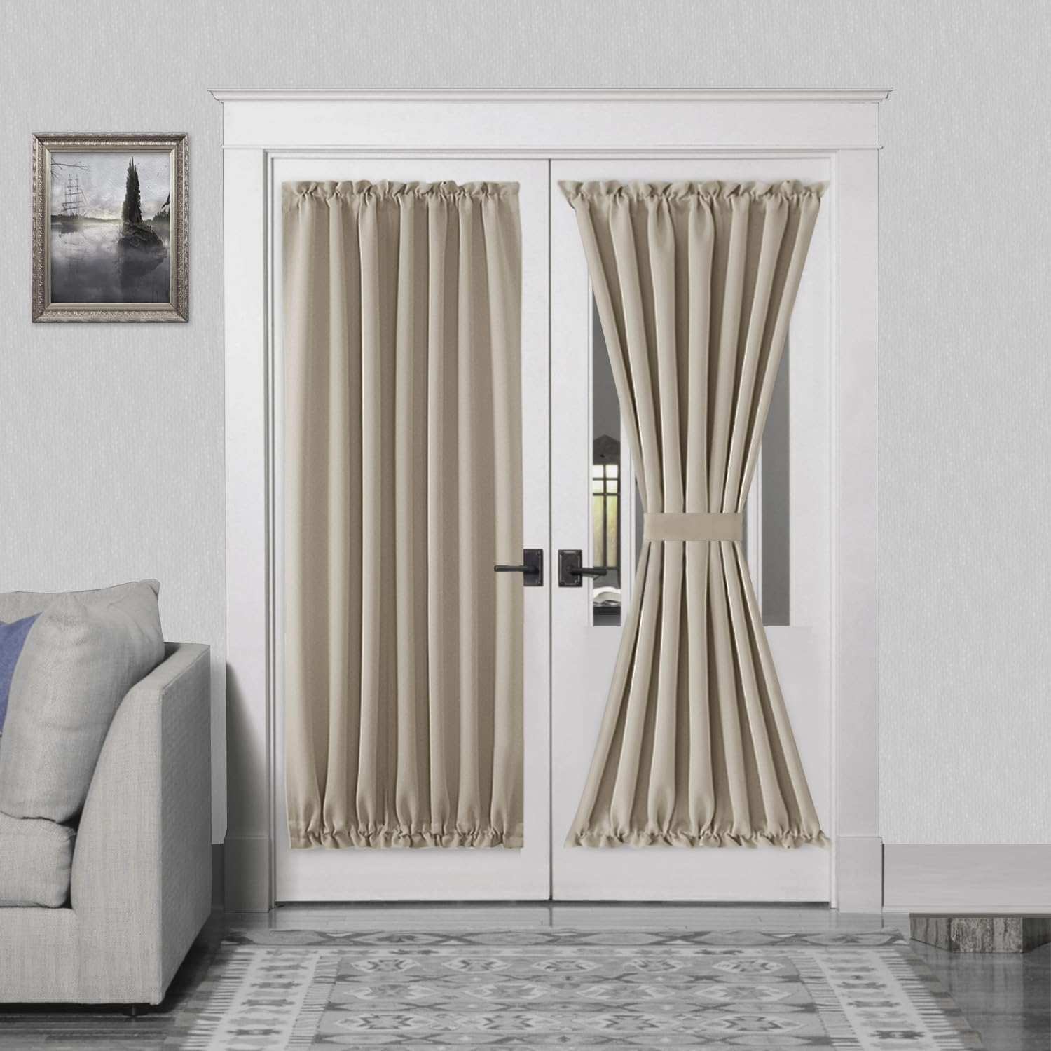 - Privacy and Noise Reducing Curtains for Front Doors with Glass Windows: Our door panels are perfect for kitchen, patio door and French door, both sides of the panels are the same color, they provide utmost privacy and reduce noise.