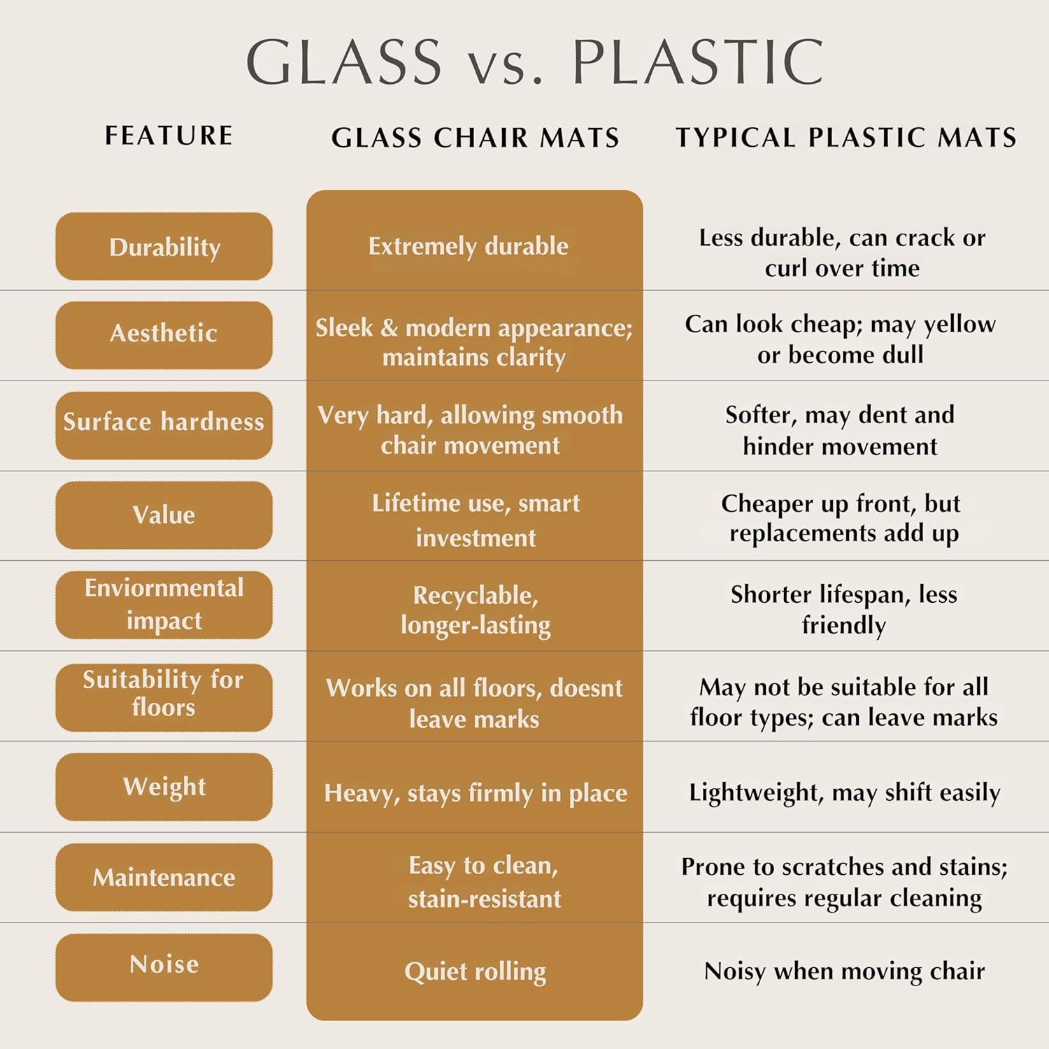 - π£π₯ππ ππ¨π πππππ₯ π ππ§ - Clearly Innovative set out to create the best ΒΌβ thick tempered glass chair mats on the market and have done so with their exclusive patented beveled-edge design that provides a smooth transition from our premium glass mat to carpet or hard floors and is matched by no other manufacturer.