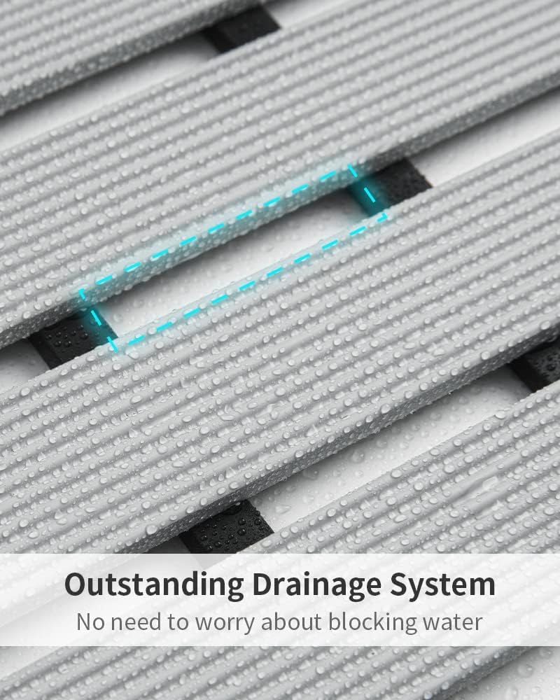 - 【Superior Drainage System】Elevated design as natural drain holes, encourage water to flow past the shower floor mat without getting caught, no need to worry about blocking water. On the other hand, it can keep your feet away from the cold floor, suitable for all the season
