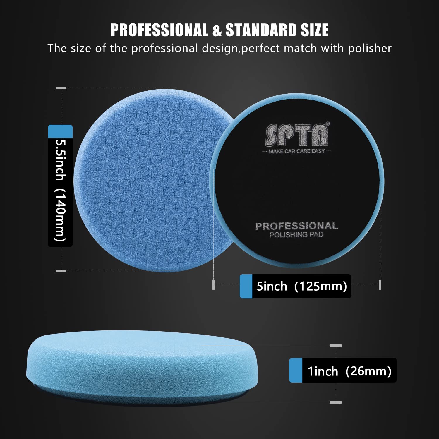 Blue Polish Pad, Buffing Polishing Pads, SPTA 1Pc 5.5 Inch Face for 5 Inch 125mm Backing Plate Compound Buffing Sponge Pads for Car Buffer Polisher Compounding, Polishing and Waxing -FPTSS5B