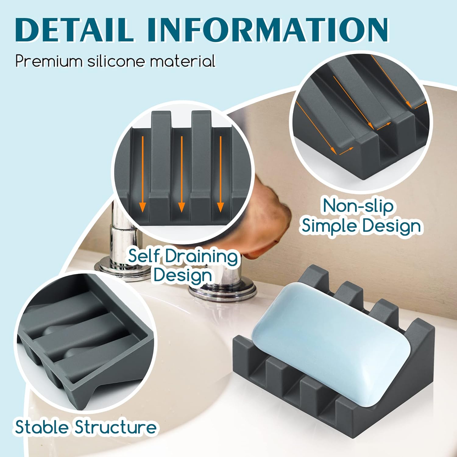 - Drainage Design:The sloping design of the shower soap dish allows the water to drain quickly, keeping the surface on which you place the self draining soap holder dry and tidy, and also makes your soap no longer sticky or melted, extending the life of the soap