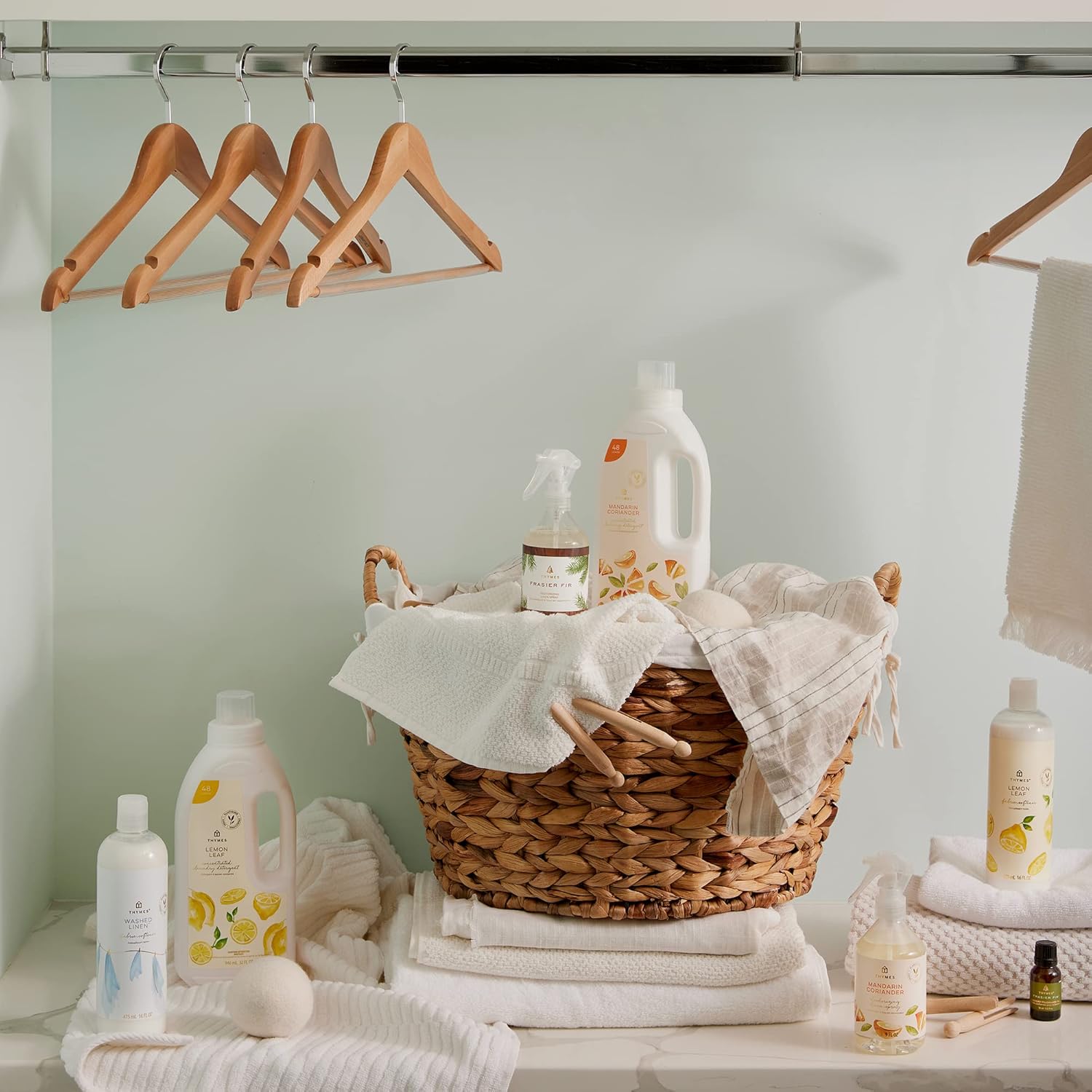 - Thymes Laundry Care: Turn laundry into luxury through a combination of powerful formulas and naturally derived ingredients. Enhance your routine with fragrant concentrated laundry detergent, linen sprays, and wool laundry balls for dryer. These anti static dryer balls are long-lasting, machine washable and hand-made with 100% pure wool that won't bleed.