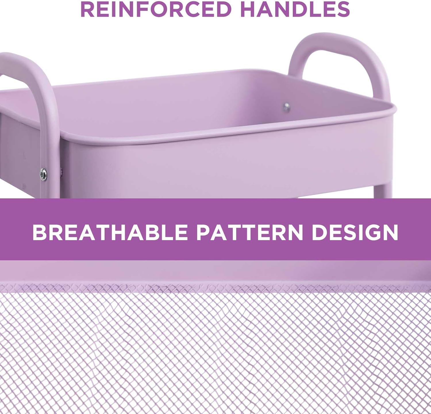 AGTEK Makeup Cart, Movable Rolling Organizer Cart, 3 Tier Metal Utility Cart with Lockable Wheels for Home & Office, Purple