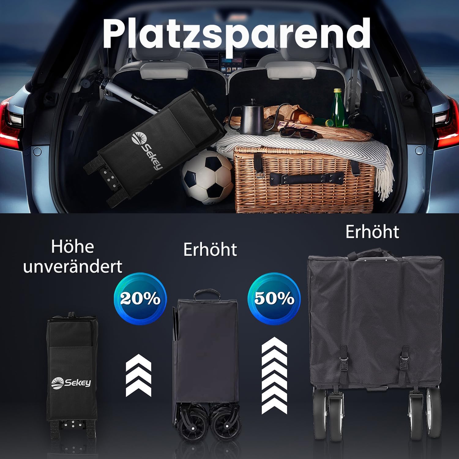 Sekey 220L Collapsible Foldable Wagon with 330lbs Weight Capacity, Heavy Duty Folding Wagon Cart with Big All-Terrain Wheels & Drink Holders (Black)