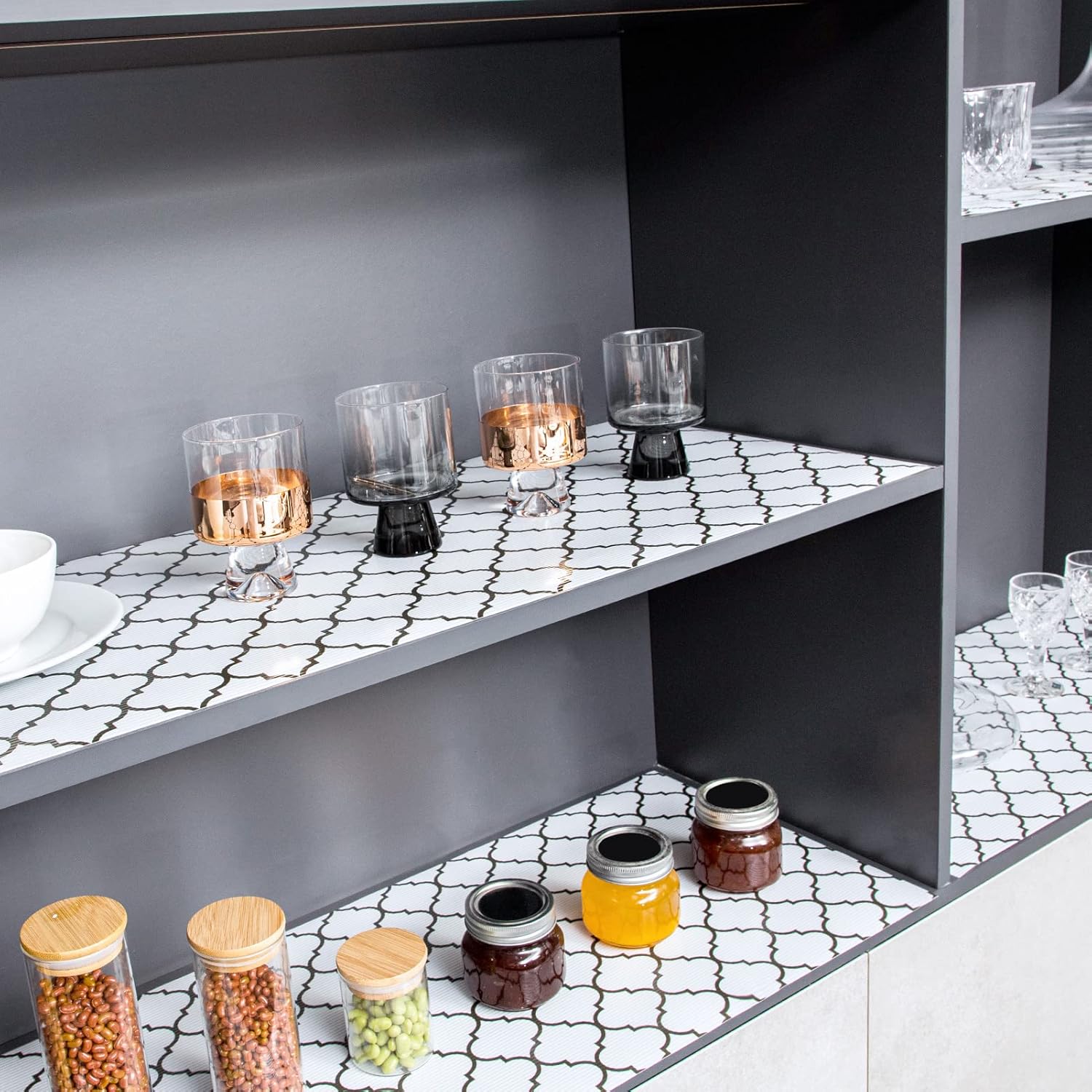 - EASY INSTALLATION AND NON ADHESIVE: Comes in the most popular pre-cut sizes for easy installation. For unique sizes and shapes, you can simply trim the pantry shelf liner with a household scissor. Just place the shelf liner non adhesive down in your drawer or cabinet and trim off any excess material. Plus, the liners are non-adhesive and easily removable