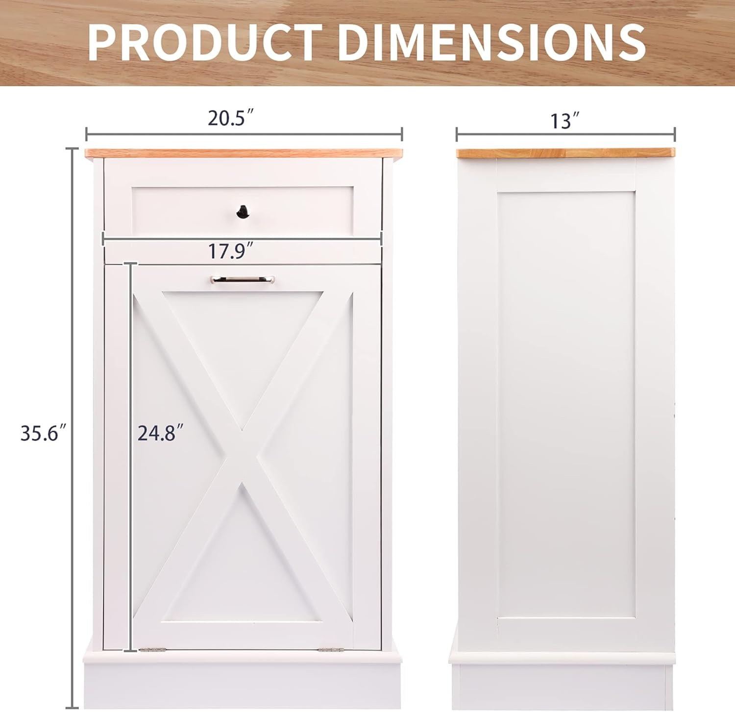 - Durable and Stable: 35.6 "H x 20.5 "L x 13 "W cabinet support is stable enough to hold up to a 35 lb (ca. 16 kg). Our Trash can, a perfect match for a 10-gallon trash can(trash can not included). Rubberwood top surface provides extra cutting space, and can easily withstand even a microwave and coffee maker
