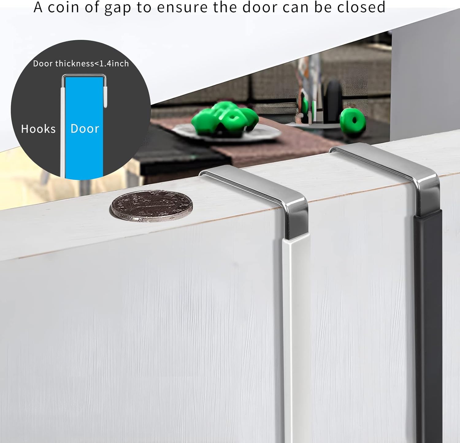 - Wide Application: The over the door hooks can be applied to most door in your house, fit doors of living room, bathroom, shower room, bedroom, kitchen or closets. Prefect for hanging clothes, towels, hats, coats, bags, etc. The hooks convert your doors into a convenient storage space and keep your room organized without messy