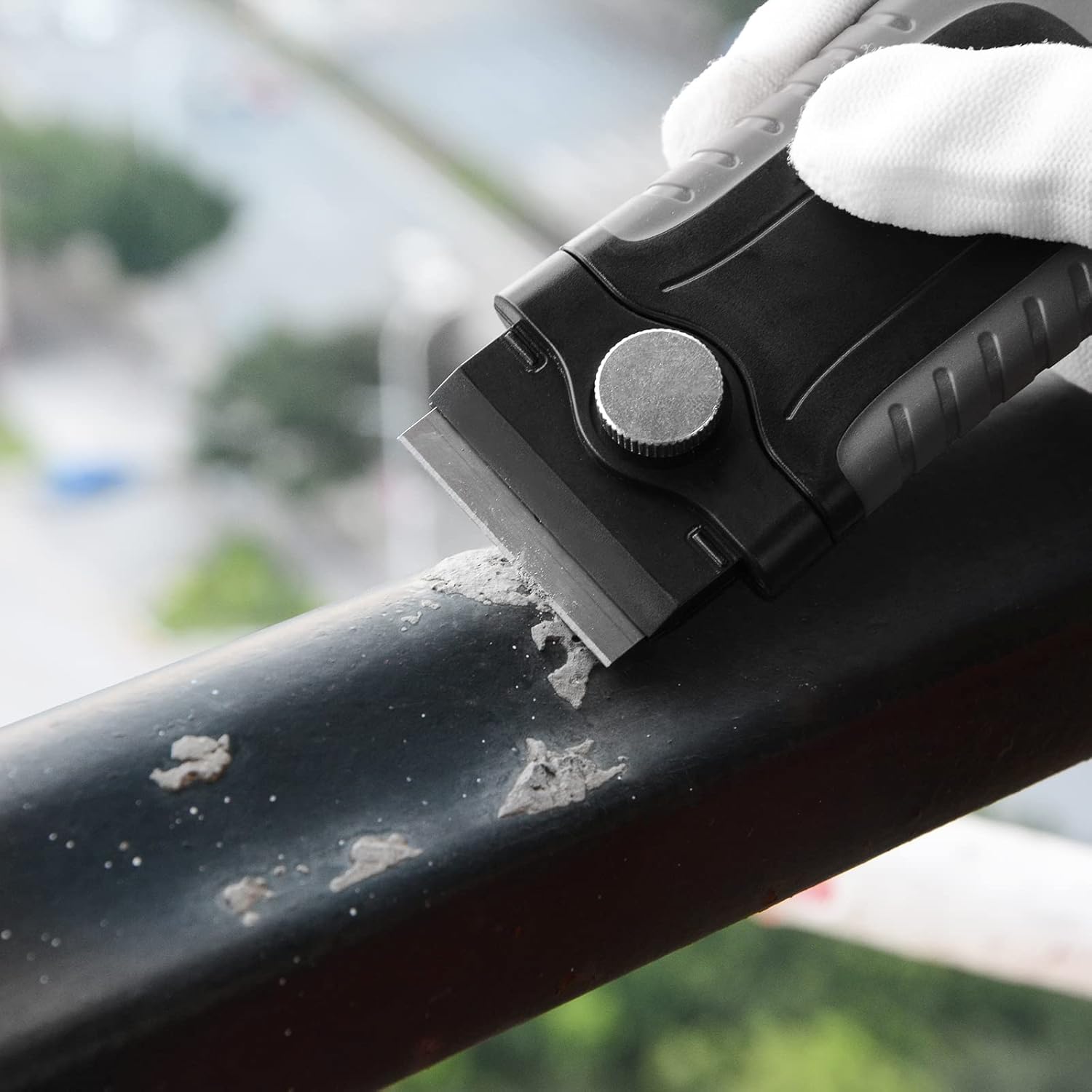 - Razor Blade Scraper Tool with stainless razor blades perfect for use on glass, ceramic, and induction stovetops and cooktops, and is great for removing burnt food and gunk, as well as scraping off in the bathroom.And also effectively for removing a variety of other materials, including window paint, shims, paints, stickers, coloring film residues, wallpaper, and borders around the house