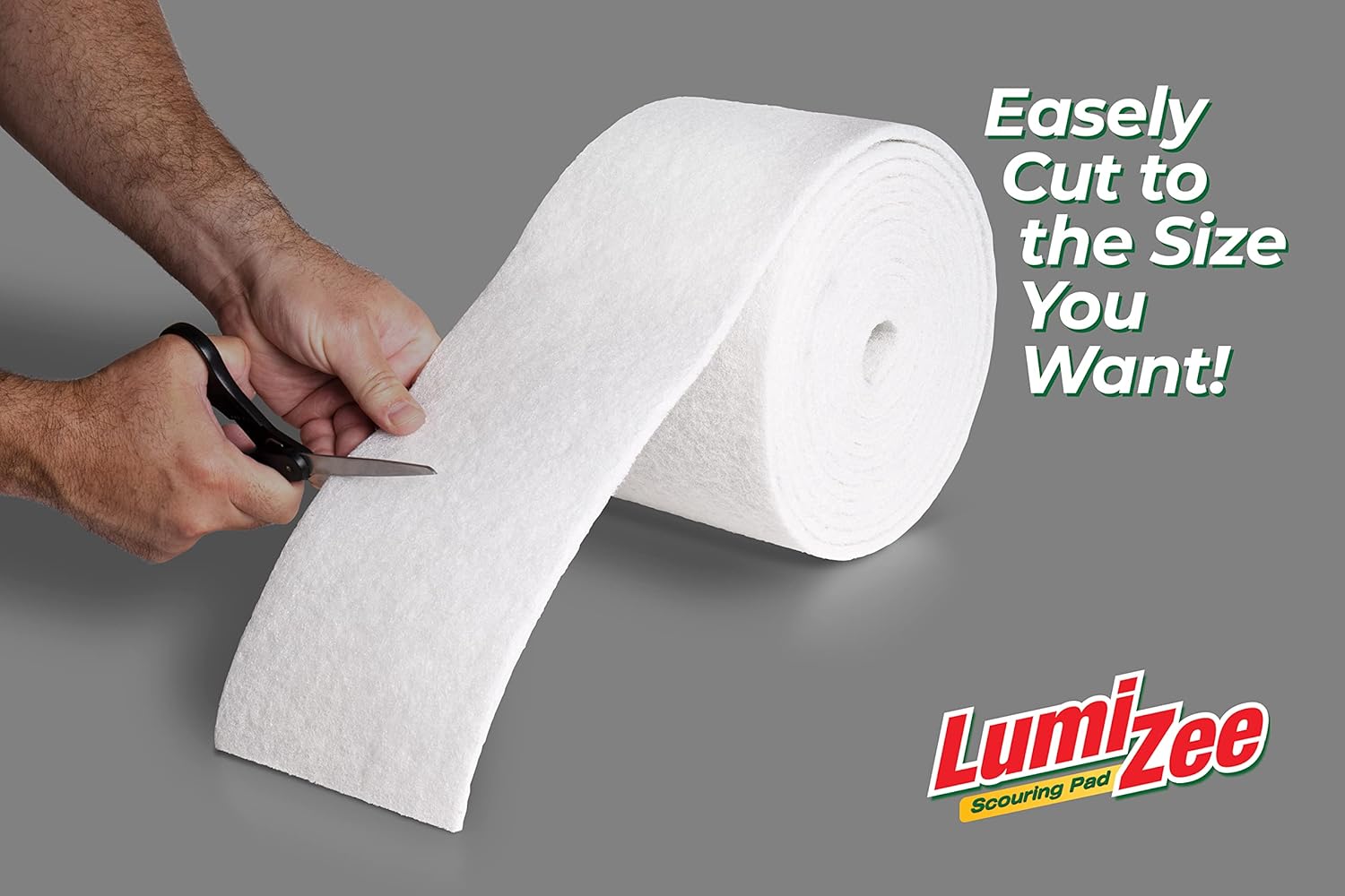 Non-Scratch White Scrubbing Pads Roll 19ft Economy Size Sponge Scouring Pad 19ft x 6in x 0.3in (6m x 15cm x 8mm) Tough Stains for Cleaning Pans Dishes Stoves Kitchen Bathroom Sinks Pots Walls Windows