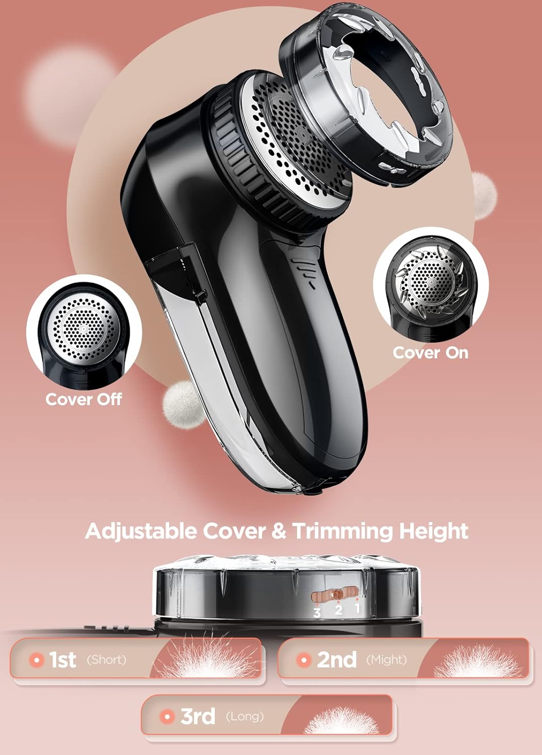 - Zero Risk Sweater Shaver: With three size honeycomb smooth surface and adjustable height, the sweater shaver is ideal for different lint types on clothes and furniture without damaging