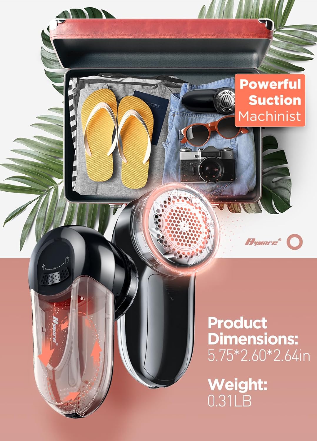 Bymore Fabric Shaver, Lint Remover, Lint Shaver Defuzzer Sweater Shaver for Clothes and Furniture AC Adapter Operated Pill Fuzz Remover (Space Black)