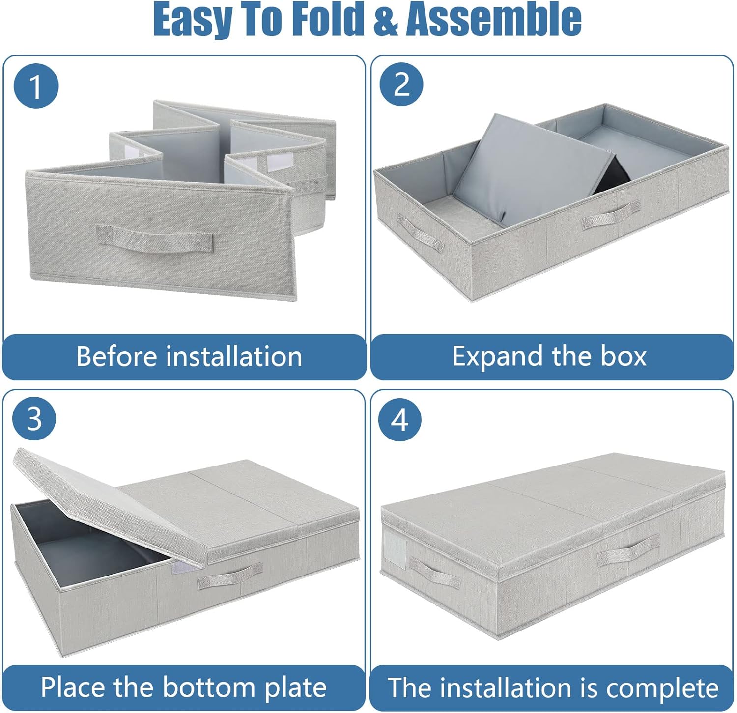 - Durable Material: The under-bed storage box is made of breathable linen fabric on the outside and made of Oxford cloth on the inside. 3 sided Reinforced handles make it easy to pull them out from under the bed.