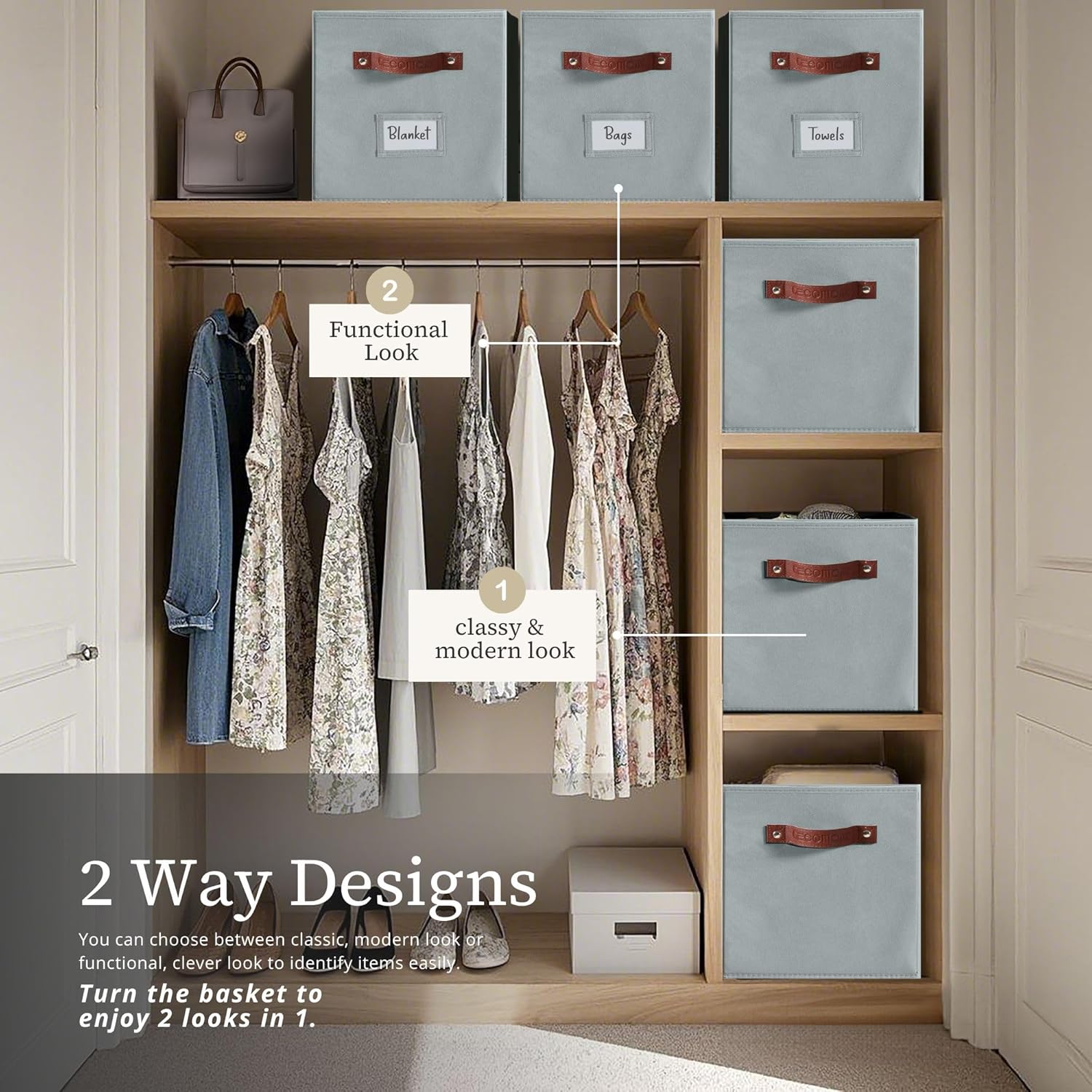 DECOMOMO Storage Cubes, 13x13x13 Storage Cube Bins with Labels, Fabric Organizer Bins (13" / 6pcs, Grey)