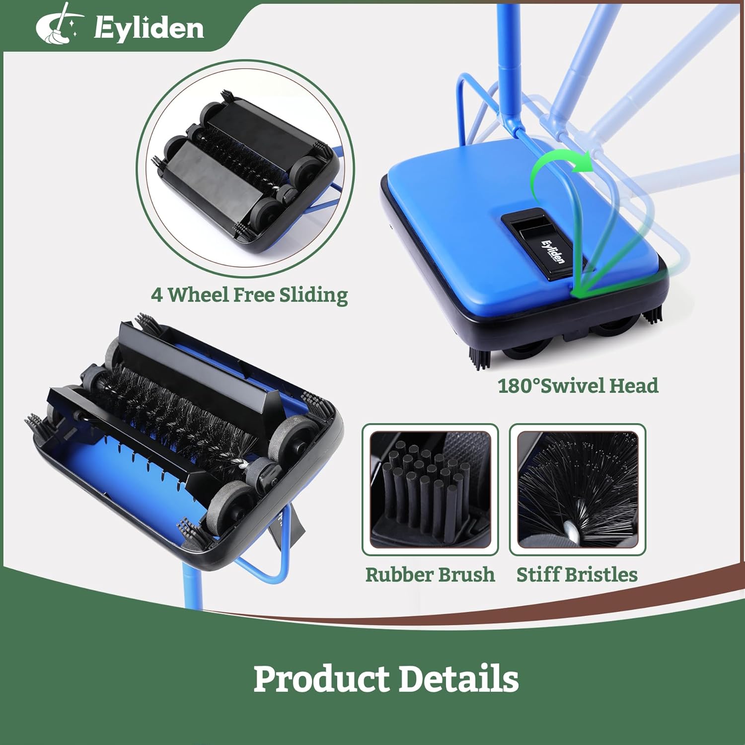 - 【Energy-Saving & Eco-Friendly】NO BATTERIES. Perfect for quick, Eyliden carpet sweeper does not require any electricity or batteries. Easily push back and forth for effective pick up.