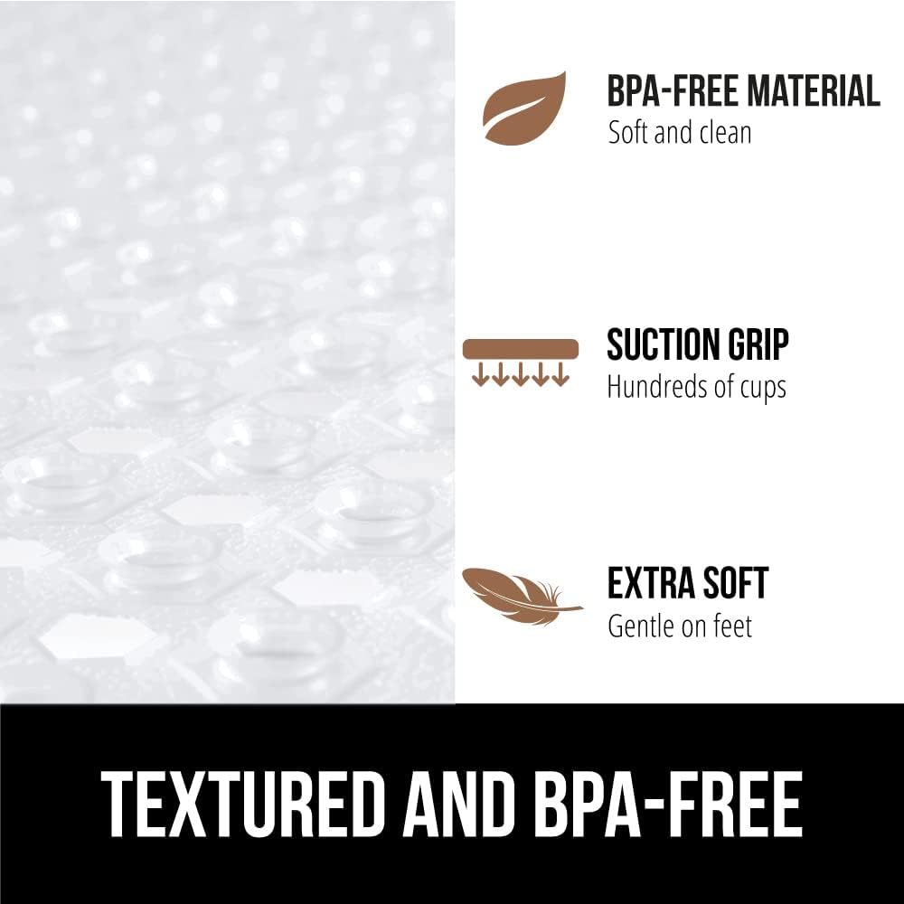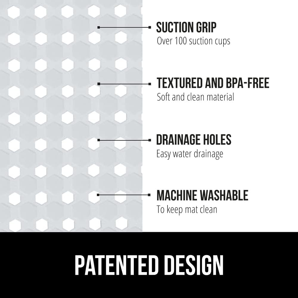 - PATENTED DESIGN WITH POWERFUL SUCTION GRIP: a shower mat designed to securely stay in place; the patented mat features hundreds of suction cups that effectively help secure the mat to your tub or shower floor