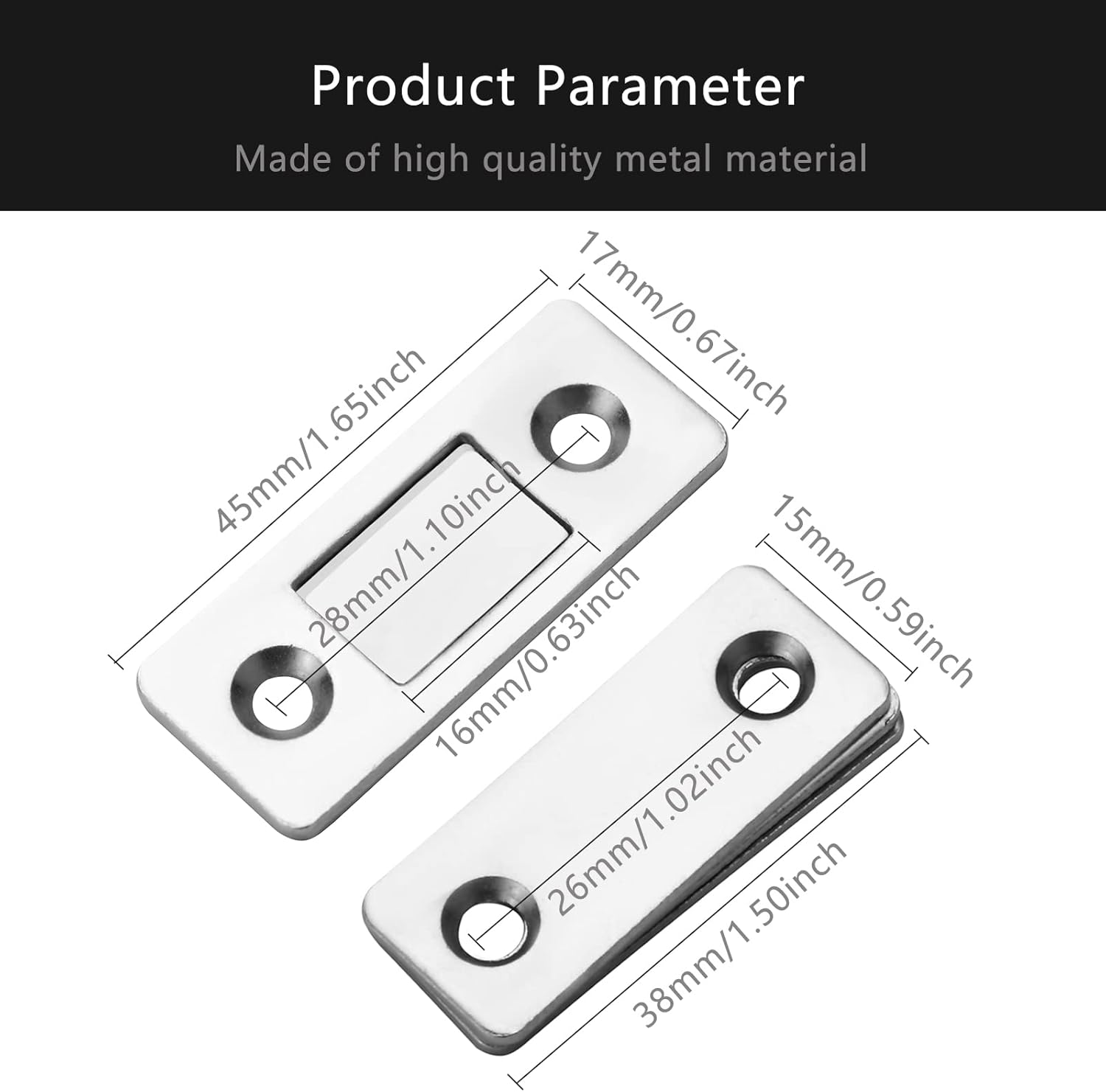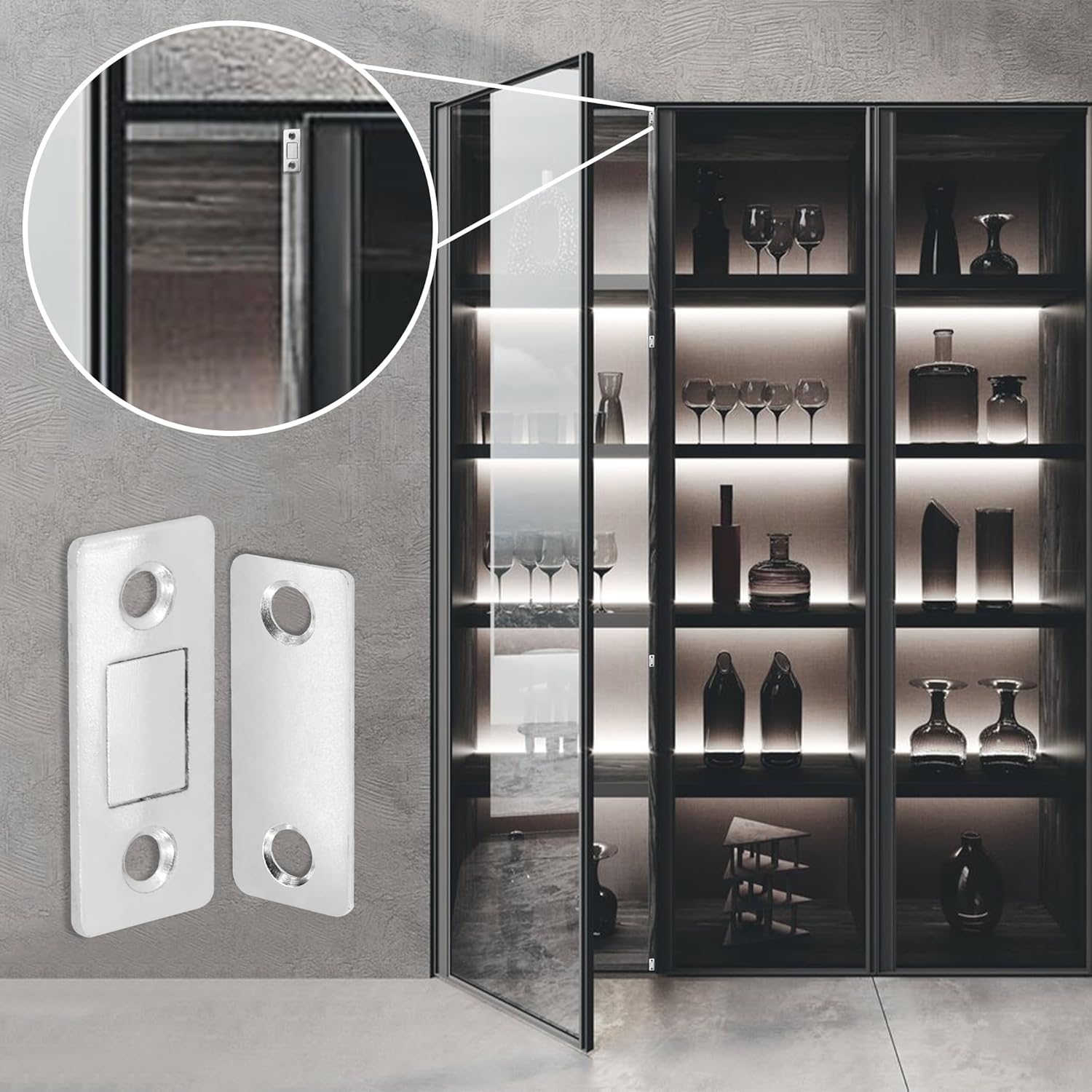 - Widely Application: The Magnetic Door Catch not only can prevent kids and pets from opening the cabinet or drawer door, but strong enough to keep the cabinet door, drawers, sliding wardrobe door, closet door shut properly. It is a good helper in your house