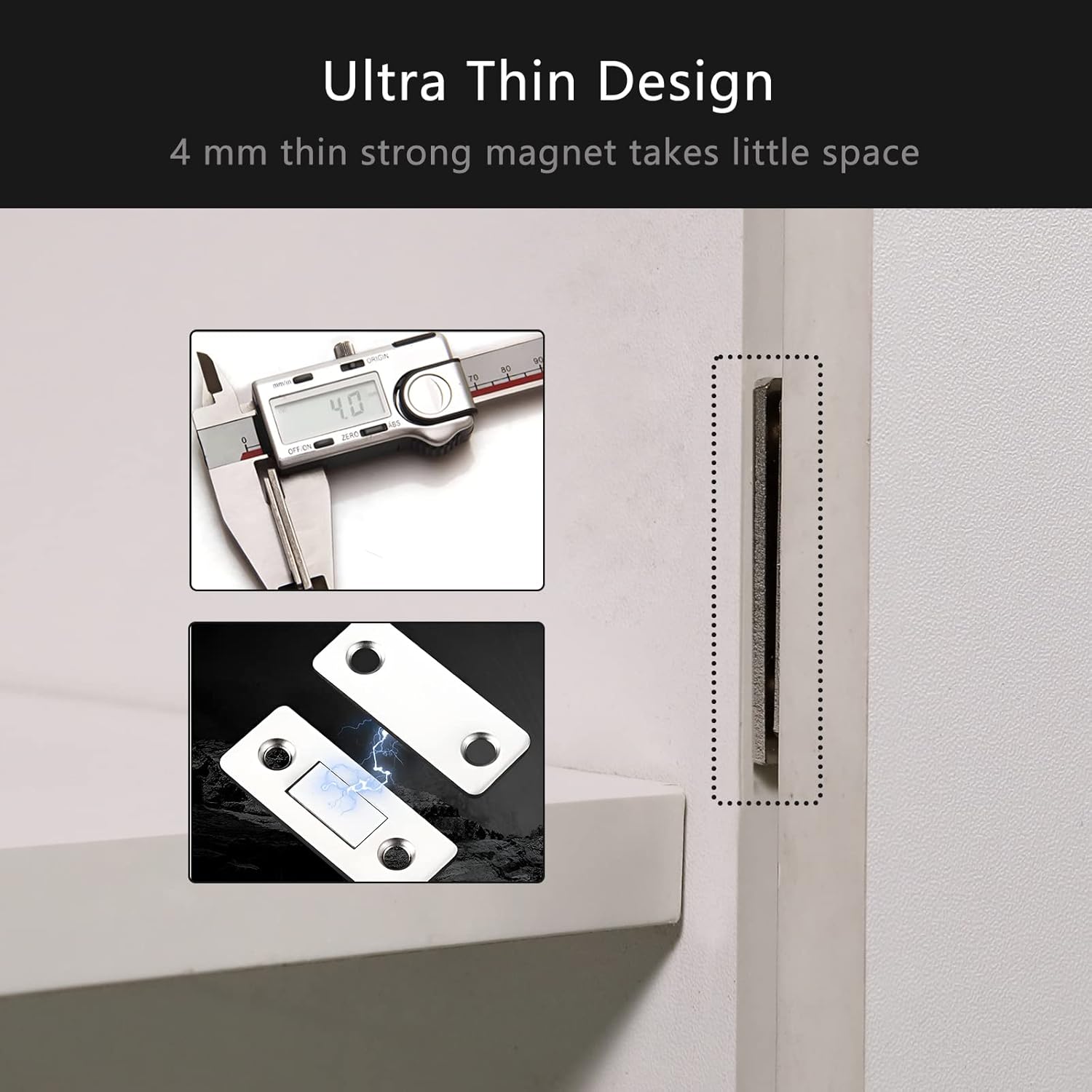 - Ultra Thin Design: Redunest magnetic cabinet door catch has 4 mm ultra thick and simple look, which is so hidden and invisible that it nearly can not be noticed after installation. It is suitable for all kinds of cabinets