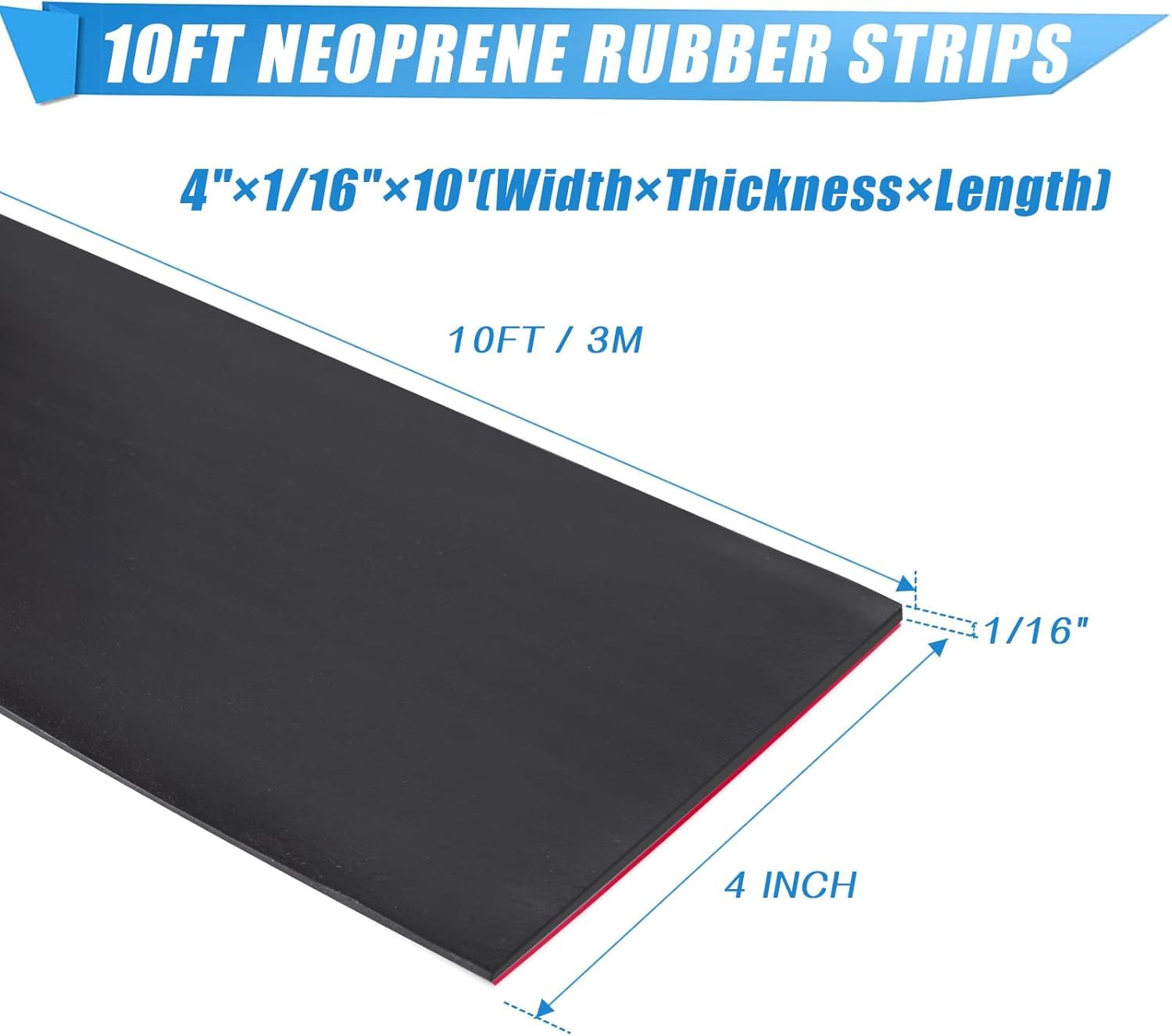 - 【Easy to Cut】The size of the Adhesive Rubber Sheet is 10' long ×4" wide×1/16" thick. It can be easily cut to your needed length with a scissor and bent easily into any shape for its good pliable property