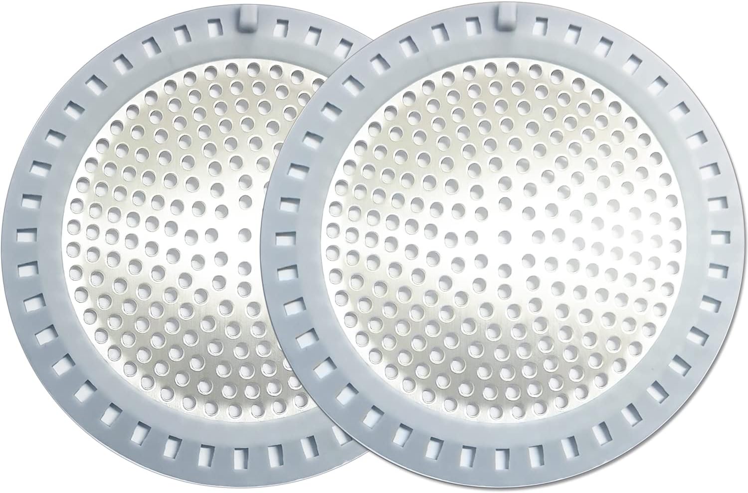 2PCS Shower Drain Hair Catcher, Shower Drain Strainer, Stainless Steel with Silicone Edging, 4.75 Inch Diameter