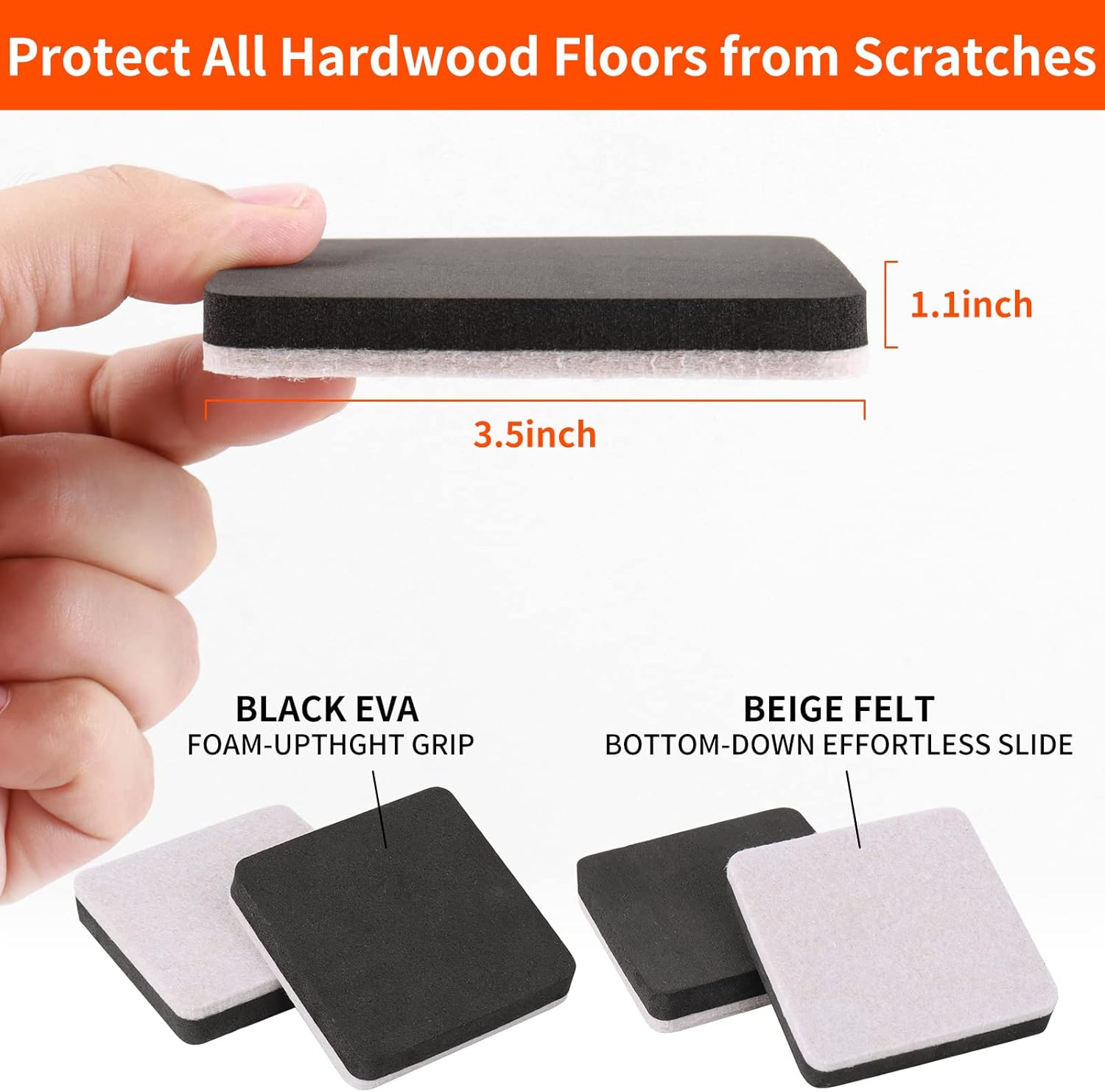 - ❤【Effortless Moving】- 3.5 inch furniture moving pads for hardwood floors are perfect for any furniture & items as moving pads provide the best weight distribution on the floor. Just put these furniture movers sliders under the furniture and to move it, can help you move heavy item with effortless!