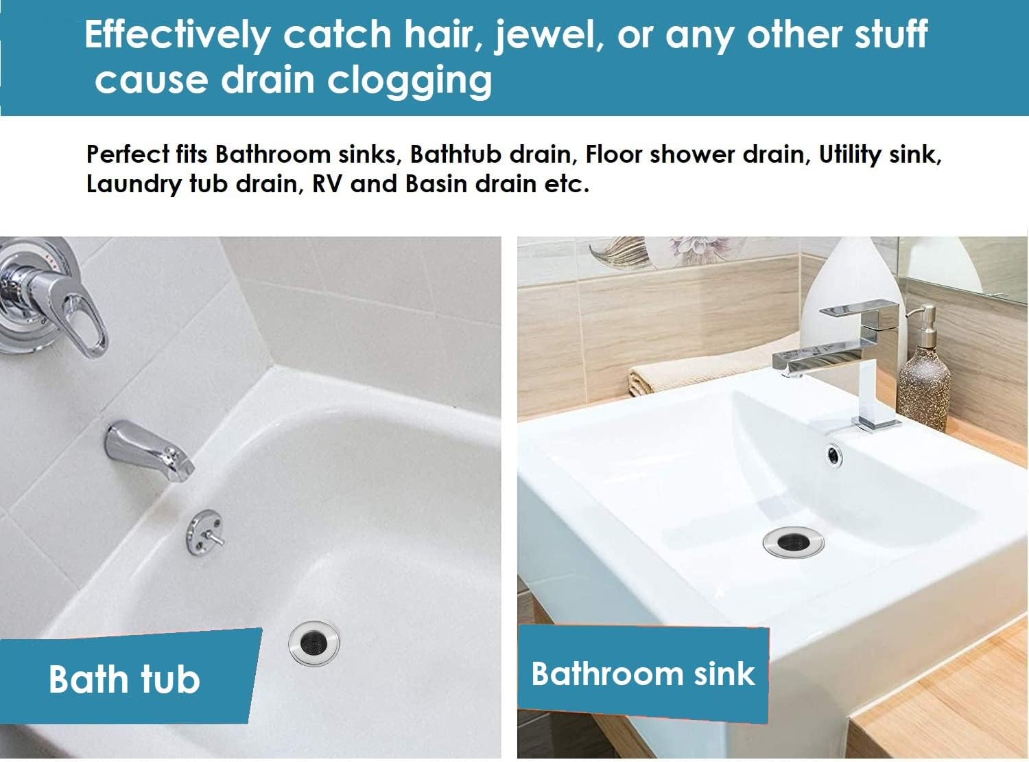 - PREMIUM MATERIAL: Upgraded Drain Hair Catcher are made of high quality 304 stainless steel, reliable, rust free and resistant corrosion. Thick and durable outside rim provides the bathroom drain strainer a secure sitting over the drain. This sink drain strainer presents smooth edge and it will not scratch your hands or damage your sinks.
