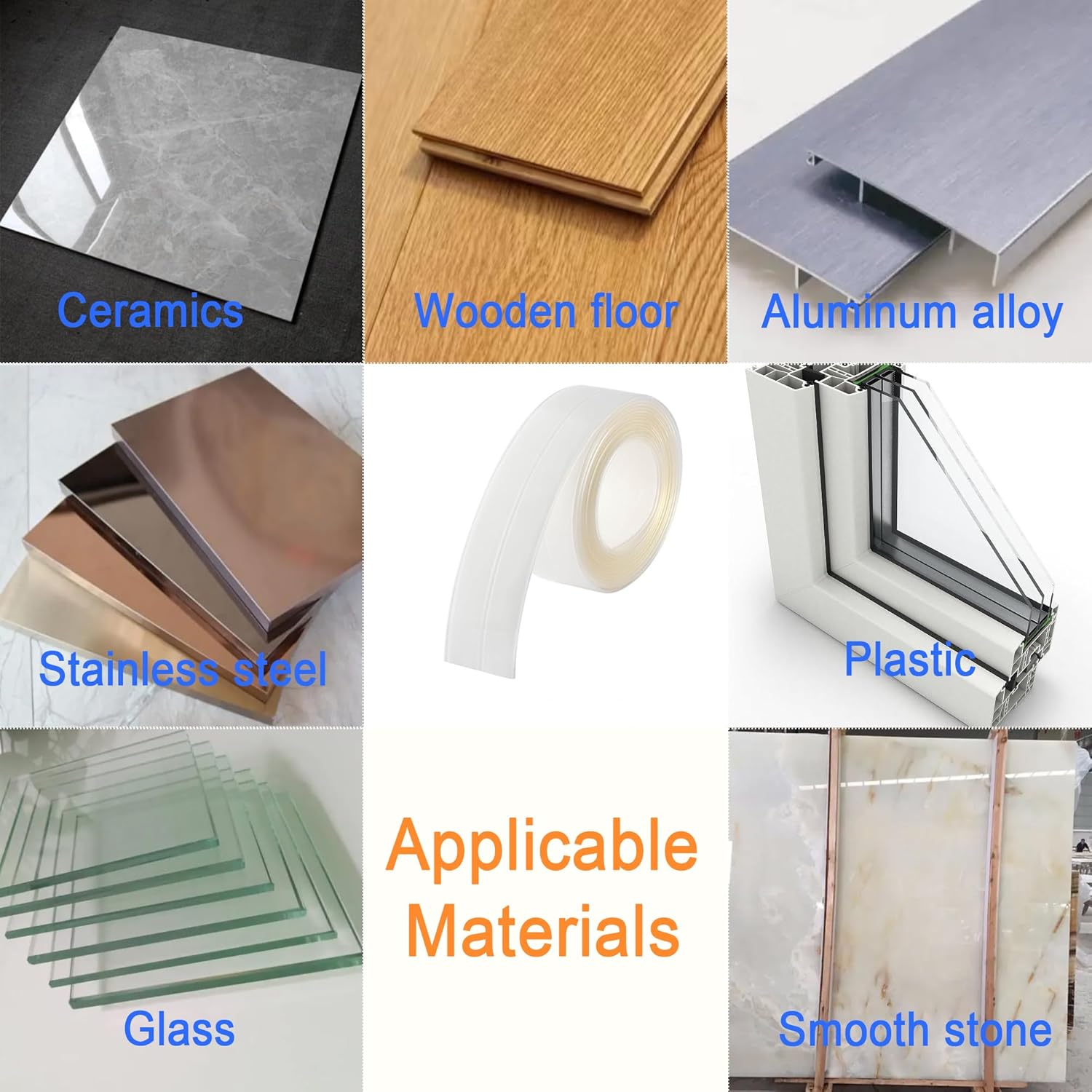- 【Wide Applications】The sealant caulk provides a professional look to the bathroom area and kitchen, keeping your house clean and tidy for a long time. It designed for the home. Caulk is ideal for tubs, toilets, corners, bathrooms, kitchen countertops, basins, sinks, gas cooktops, marble countertops as bathtub caulk tape, molding tape, clear bathroom caulk. Whether it is glass surface, wood surface, metal surface, plastic surface, tile surface, marble surface, our tape can be used.