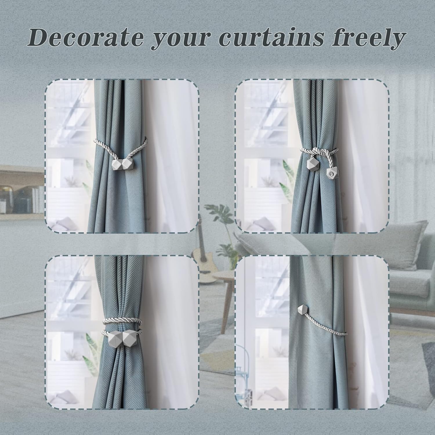 - [Upgrade Powerful Magnetic] Our magnetic curtain tiebacks magnets use high-end new imported nickel-plated magnets, with strong corrosion resistance and durability, more magnetic than ordinary magnetic curtain tiebacks, and do not rust and not lose color. The rope of curtain tie adopts upgrade thickened solid polyester yarn, which is not only durable, but also not easy to wear or pilling.