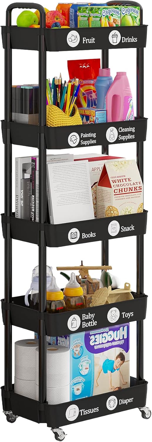 Laiensia Storage Cart,Multifunction Utility Rolling Cart Kitchen Storage Organizer,Mobile Shelving Unit Cart with Lockable Wheels for Bathroom,Laundry,with Classified Stickers