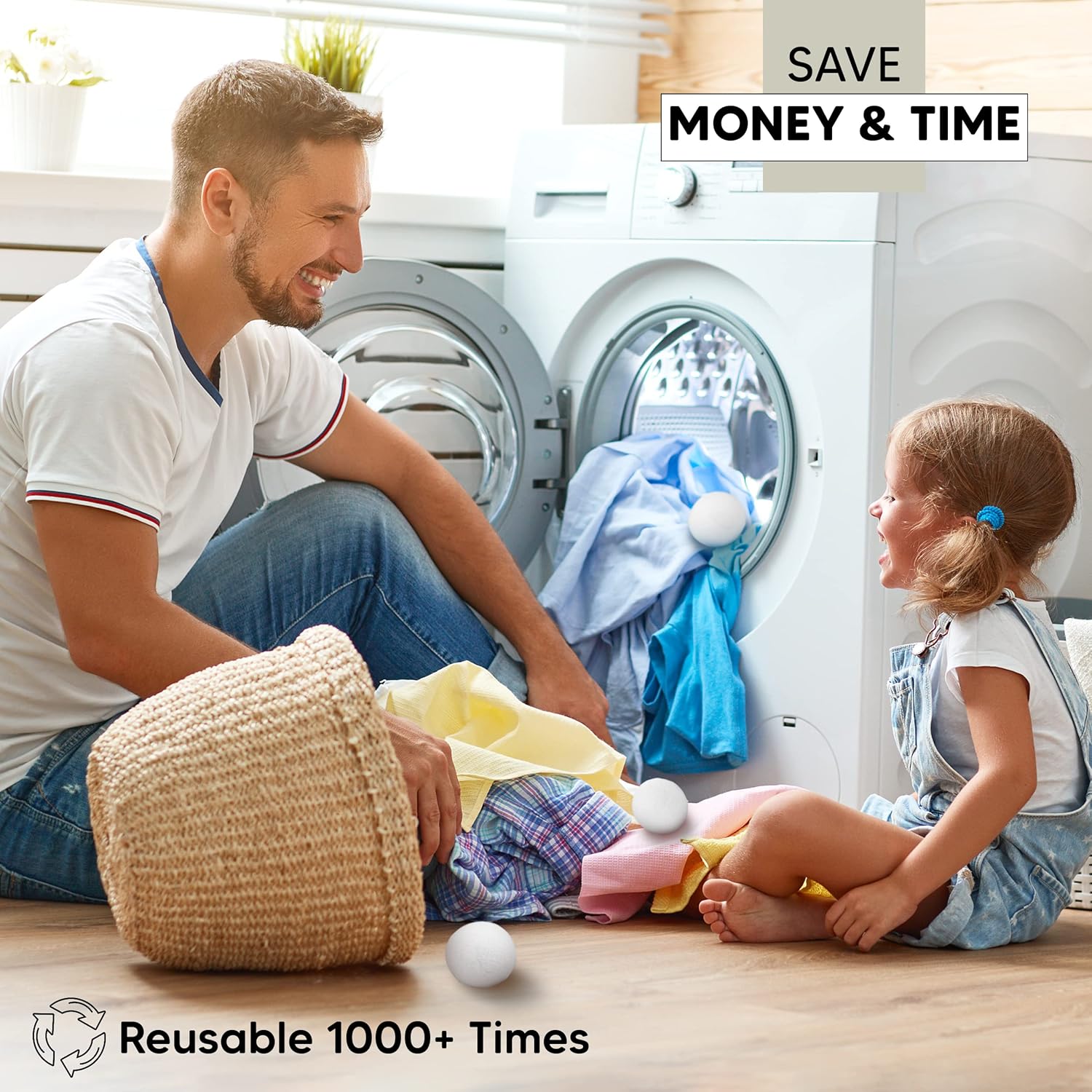 - š Let Your Dryer Balls Flow: Replace the infused fabric dryer sheets and fabric softeners with this natural alternative that will last more than a thousand dryer loads. These help in better hot air circulation as the dryer balls tumble around in the dryer, lifting and separating the laundry. This will also help in reducing appliance usage and electricity by shortening drying time.