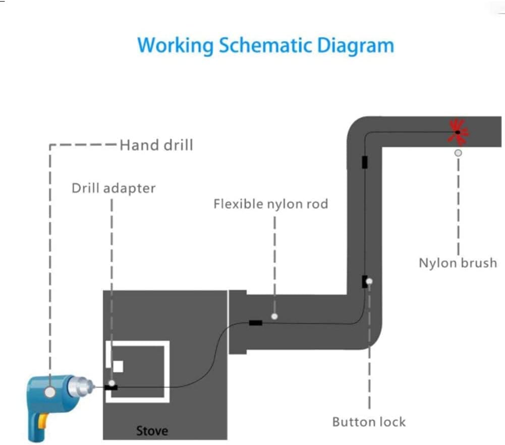 - EASY TO ASSEMBLE AND DISASSEMBLE: You can connect multiple rods to extend your reach. The rods are flexible which can perfectly get through those tough flue bends. The efficient dryer brush can be used with or without a drill for professional results. Run the drill in and out of the pipe in a forward motion, never backwards.