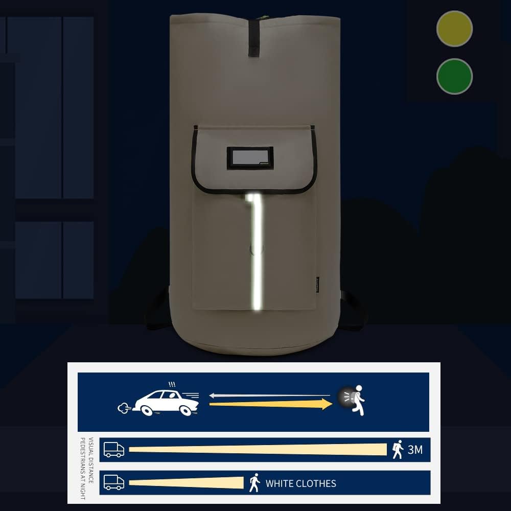 - [Large capacity & multi-pocket design】The laundry bag backpack measures 37.5 ''H*15.5 ''L and weighs 17.3oz. The top of the backpack is retractable and can be expanded up to 38" high. With a maximum capacity of 115 liters, it is larger than the average backpack. With a 11.75 "H*11 "L*2 " front pocket, it can hold laundry detergent, underwear, socks, laundry cards, and other accessories. The multi-pocket design makes it easier to find items by sorting them