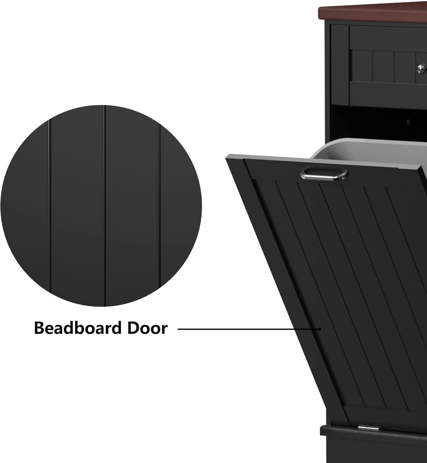 - 🏡【Durable and Stable】cabinet support is stable enough to hold up to a 35 lb (ca. 16 kg). Our Trash can, a perfect match for a 10-gallon trash can(trash can not included). Rubberwood top surface provides extra cutting space, and can easily withstand even a microwave and coffee maker