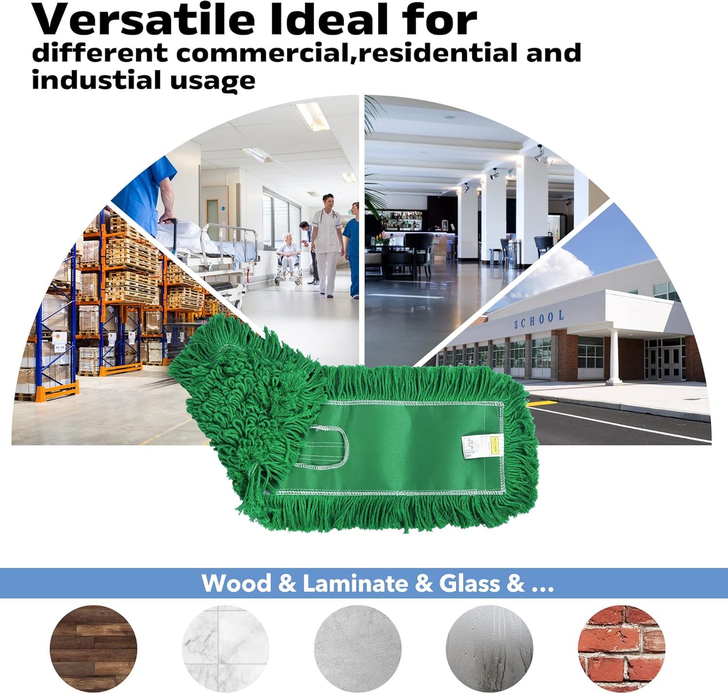 Matthew Cleaning 24'' Industrial Strength Cotton Dust Mop Refill Washable Replacement Heads for Residential & Commercial Use Fit Standard Dust Mop Frames, Hardwood,Concrete Floors Green 1 Pack