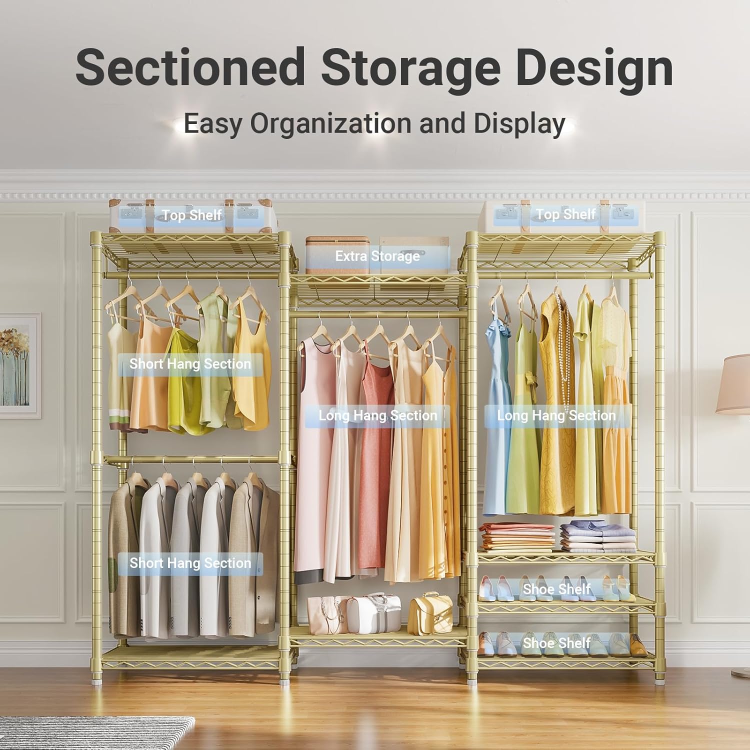 VIPEK V5 Portable Closet Wardrobe Heavy Duty Clothes Rack, Freestanding Metal Clothing Racks Custom Closet Racks with 8 Adjustable Shelves, 68.9" Lx15.7 Wx76.4 H, Max Load 890LBS, Gold