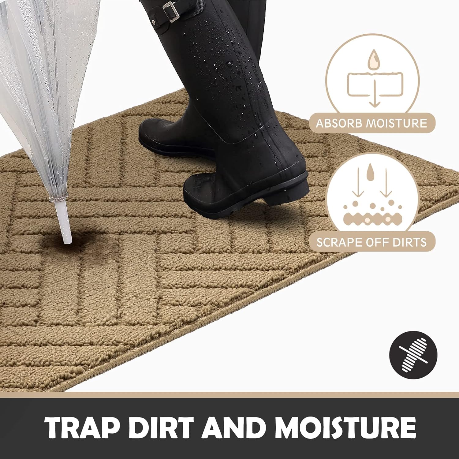 - KEEP YOUR FLOORS CLEANE AND DRY: Our Indoor Doormat was designed with double layer technology and irregularity carpet surface design. It is more efficient to absorb water and catch mud and moisture from muddy boots or petโs paws. No pressure, keep your home cleaner and more beautiful
