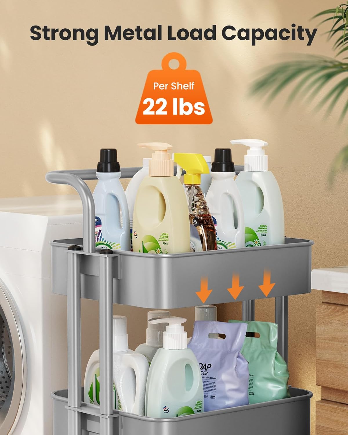 - STRONG & STURDY: The utility cart is made of high-quality metal materials to hold up to 22lbs per shelf. The 3 tier rolling cart is perfect for party night to keep guests entertained with mobile drinks and an ice bucket.